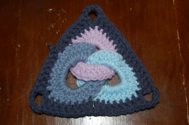 Neat pattern! Overlapping rings are an interesting technique and I really like how this pattern uses triangles. Can’t wait to see the whole thing!