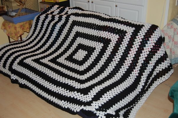 Oh, Ali, it’s amazing! I’m glad you photographed it on the futon, ‘cuz it gives me perspective. It is huge! You know, there’s going to be such demand for these blankets, maybe you shouldn’t tell people you’ve made us three blankets. They’re already jealous.
