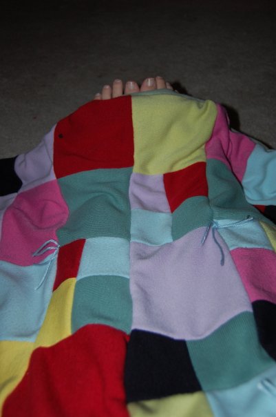 So maybe you’re actually really sick of looking at this brightly colored blanket, but here it is in FINISHED form. Sheesh, took me long enough to get the pictures up, but it’s actually been done for a bit.