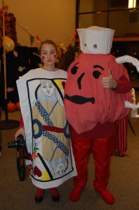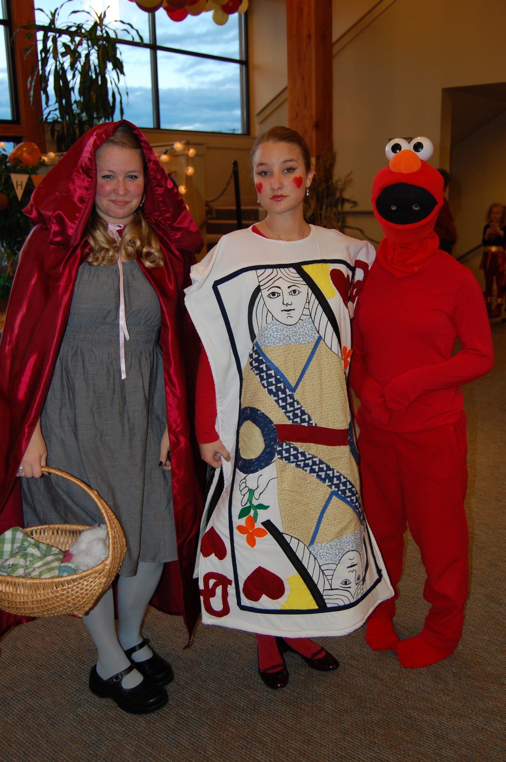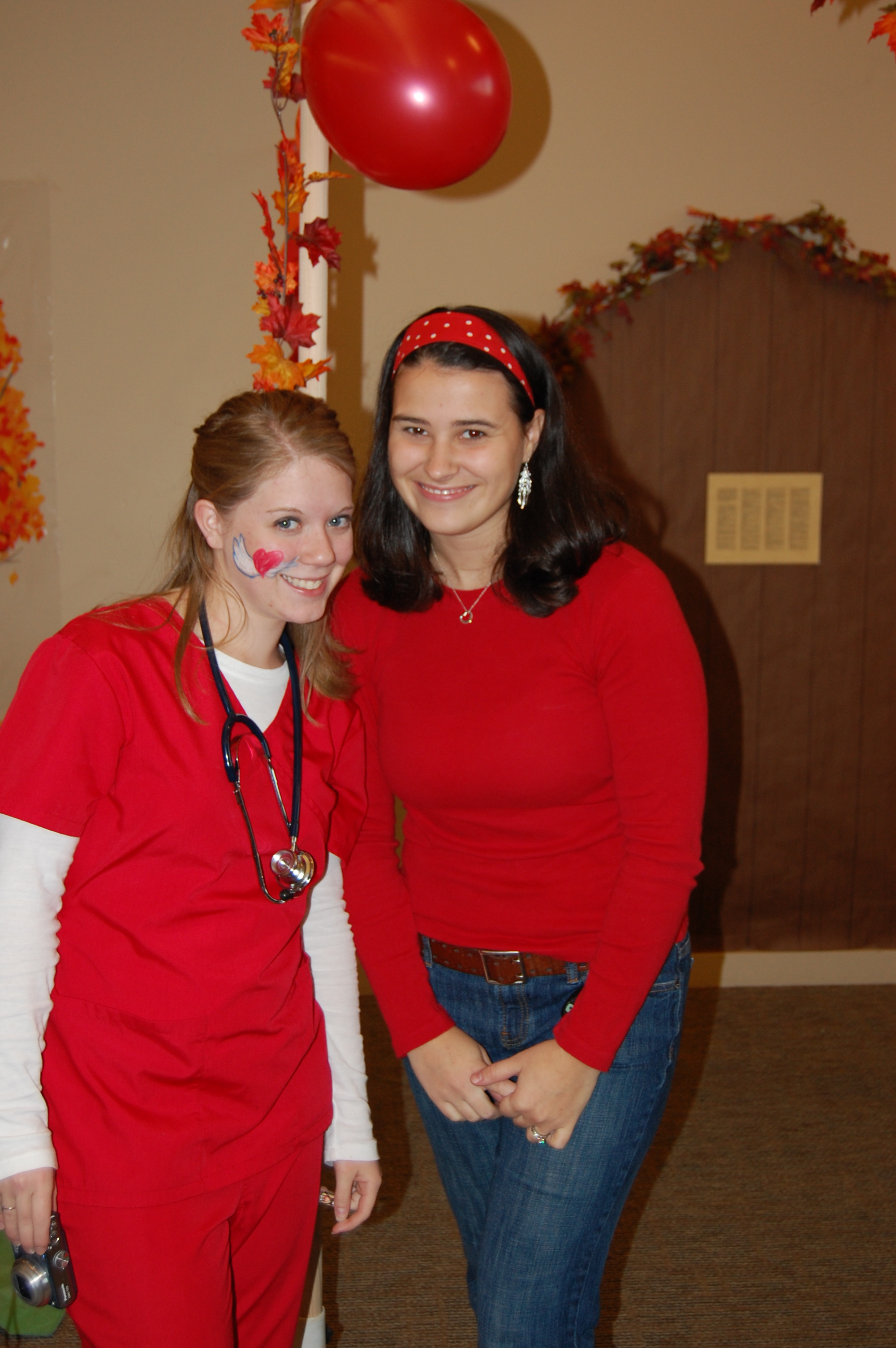Last night we had our church’s harvest party. Many kudos to Kjerste and Derek for heading up booths and stuff. There were lots of fun games, lots of little kids in red. As Little Red Riding hood, I wasn’t very original, but that’s ok, there were lots of adorable lady bugs and check out Kaylynn as a football (the most adorable thing). My mom, Heather, Mrs. Allison and I did face paintings, and I did a ridiculous number of “Elmo’s”, but I think that was mostly because of Heidi’s influence. Check her out: