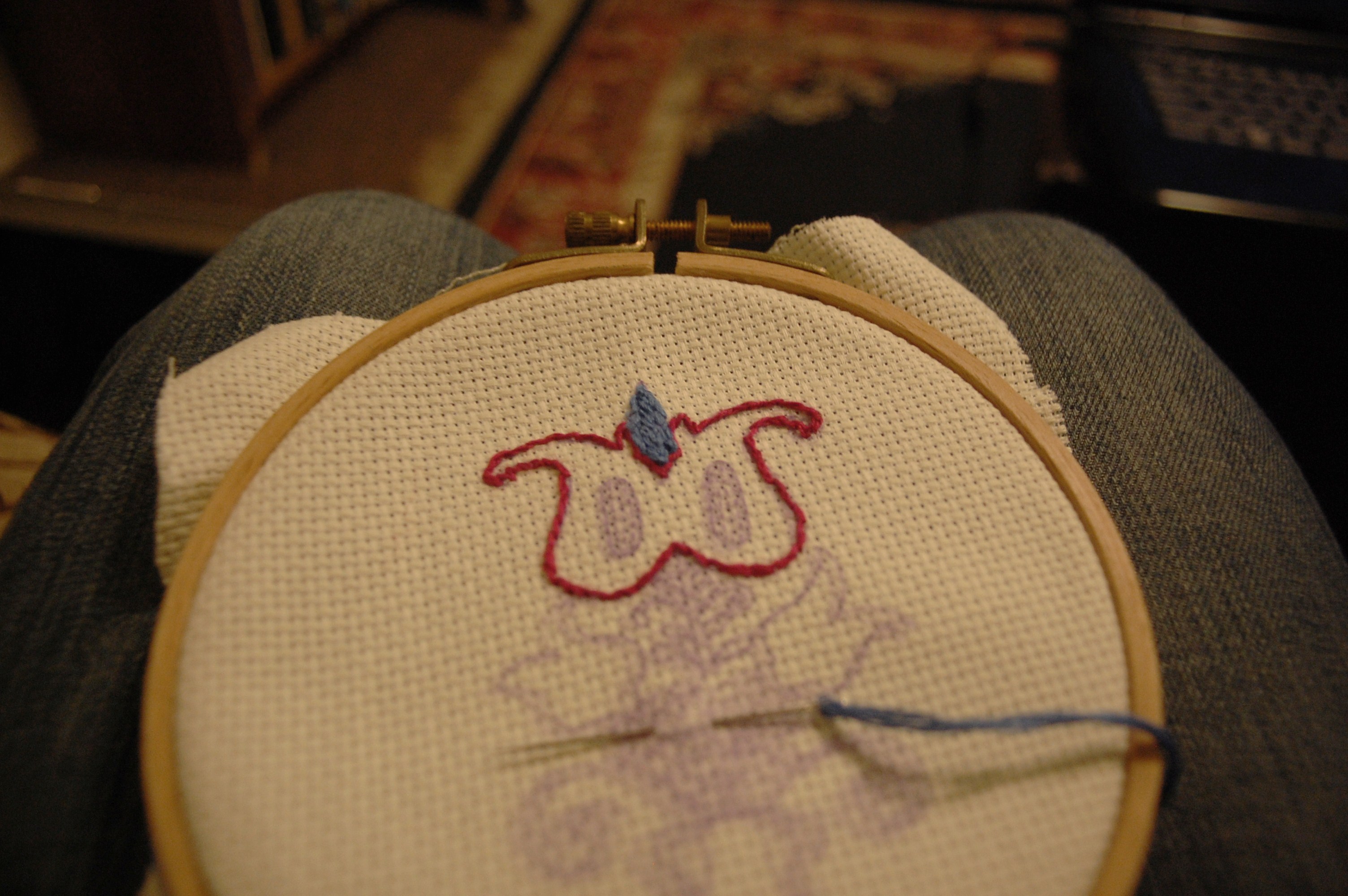 I started working on it this evening after band practice, while watching the new episode The Office.