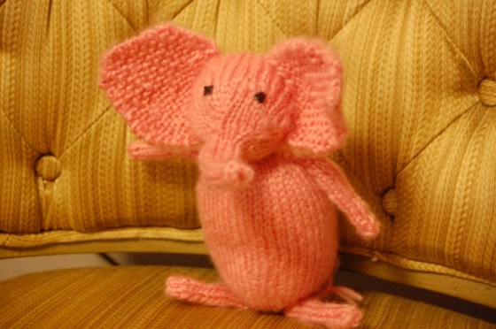You should have about 6 stitches on your needles, knit those on DPN’s until your trunk is as long as you want it. Bind off.