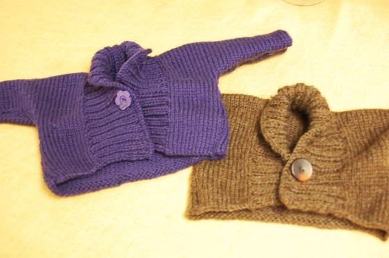 The purple for Afton’s baby girl, and the brown for Emily’s baby boy, so the cute cousins can be matching.