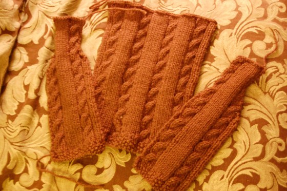 I’ve gotten a significant amount done on the brown cable knit sweater.