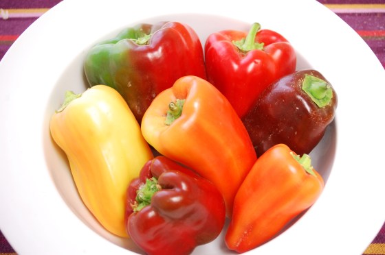 Seriously, we got orange, red, purple, green, yellow. So tasty, too, but I am just looking for another thing to do. Maybe stuffed peppers?