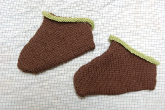 Someone requested a few pairs of felted slippers. I haven’t done a whole lot of felting, but I already had a pattern for a pair, so I thought I would give it a try. They look absolutely ridiculous, so I am curious to see how they will look after felting.