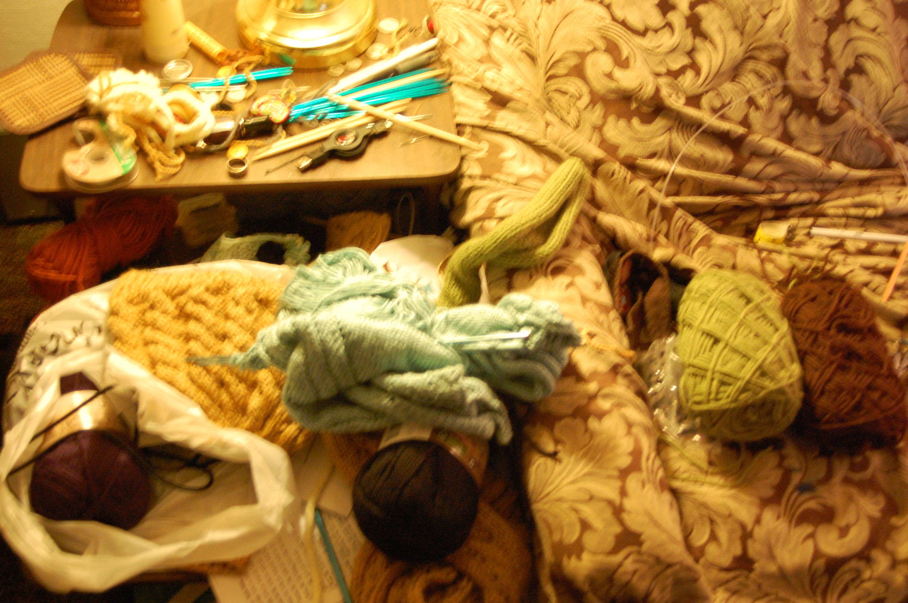 This picture made me smile, Ali. That is exactly what my couch (and desk and kitchen table) looked like earlier this evening. Glad I’m not the only “messy” knitter.
