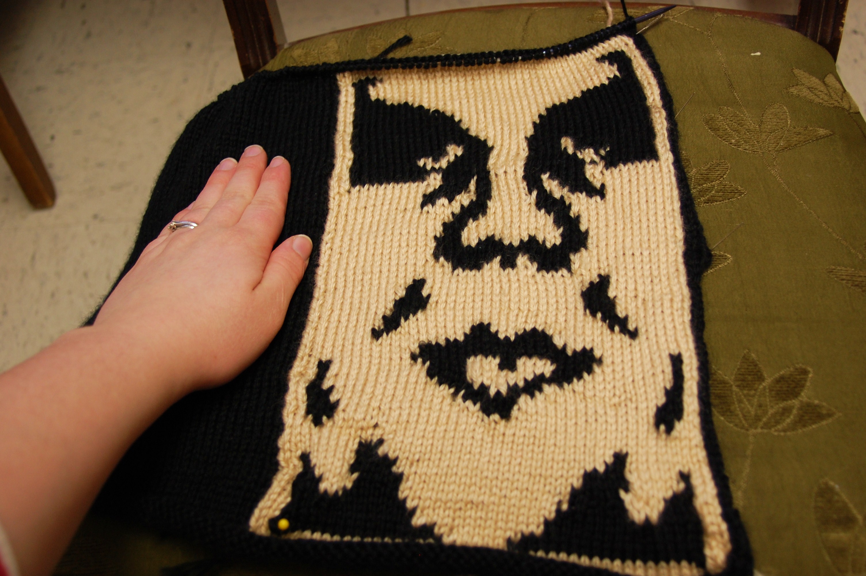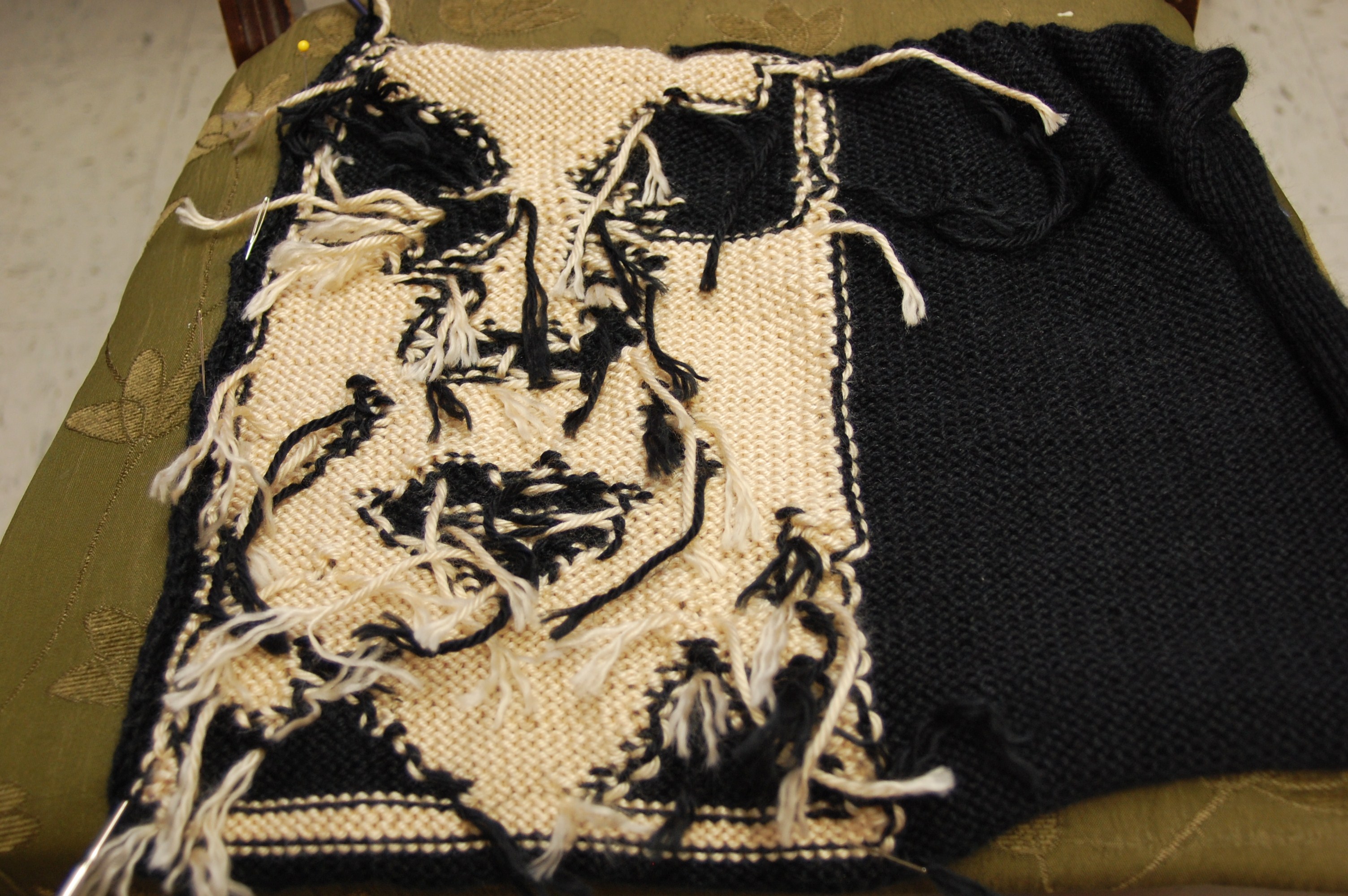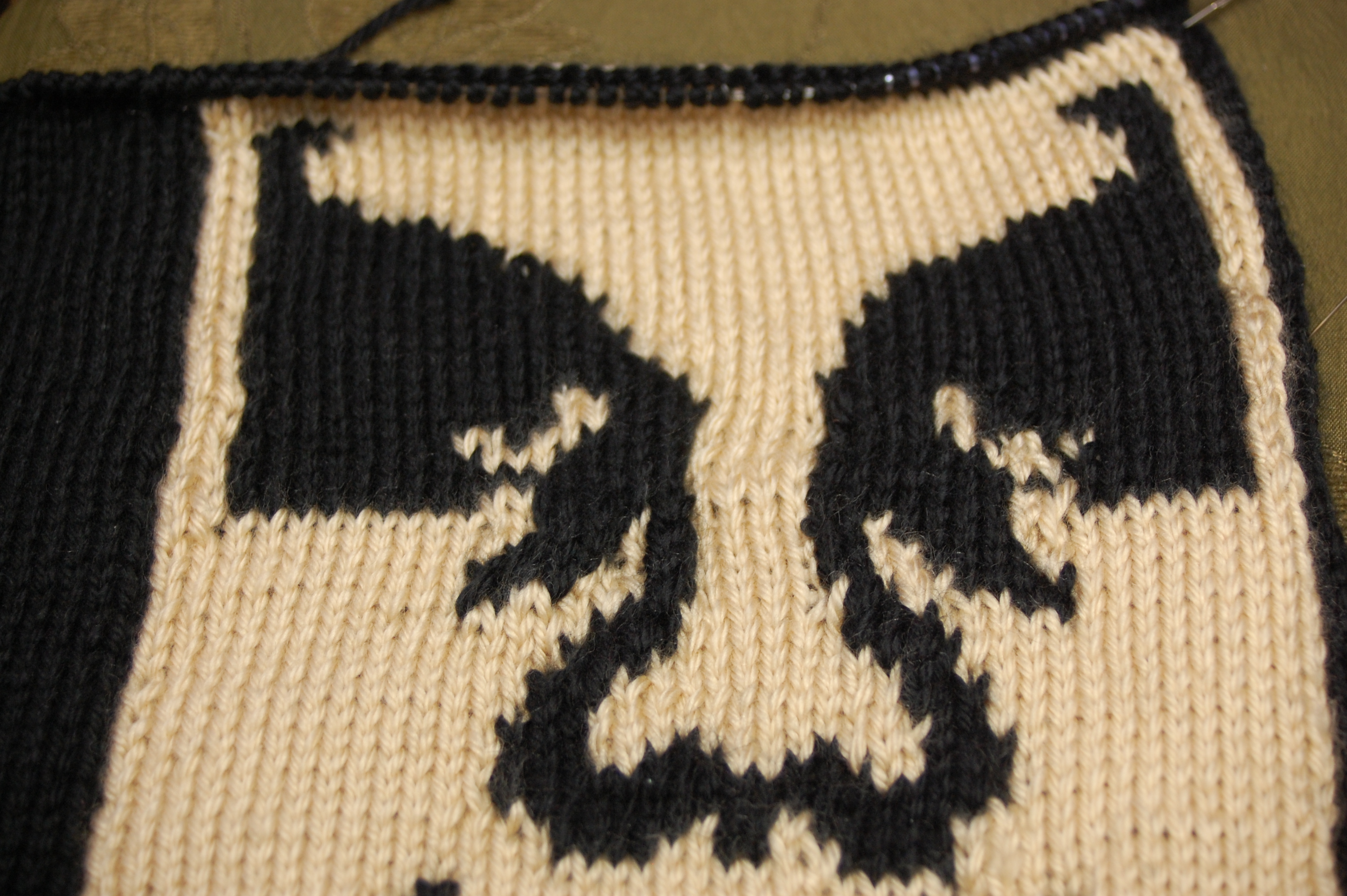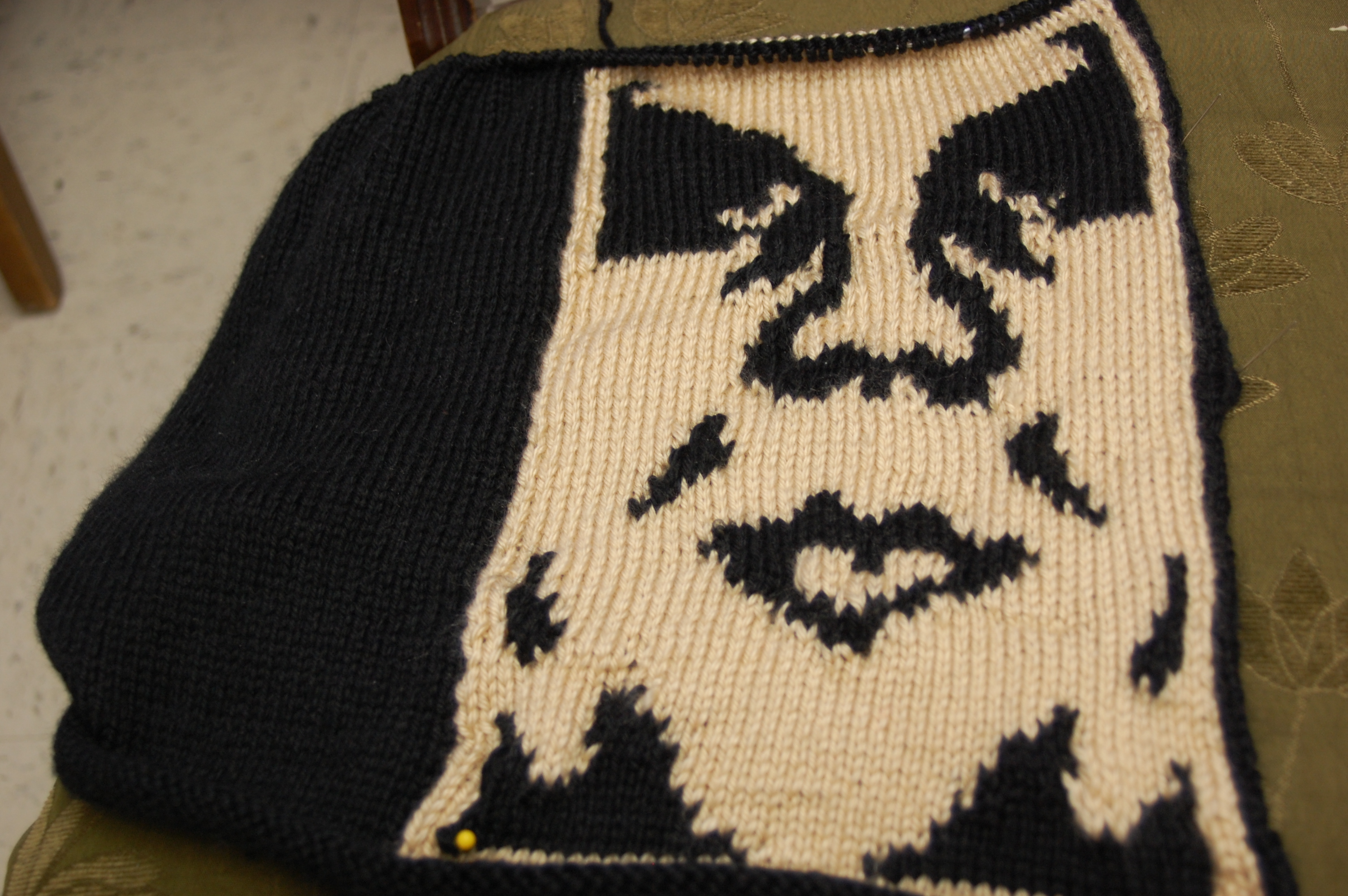 So, I finished the first 1/2 of the intarsia knitting on my Andre the Giant project.