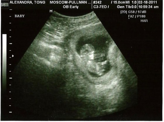 The baby was jumping around like crazy during the ultrasound, waving its little t-rex arms all over the place and bouncing up and down. It was hilarious. I’m not going to lie, I was really, REALLY nervous about this ultrasound. I kept having this awful feeling that something was wrong, but hearing the perfect heartbeat (162 beats per minute!) It took a while for the baby to calm down enough to get a clear picture, but it was good to know that the baby was an active little guy/girl!