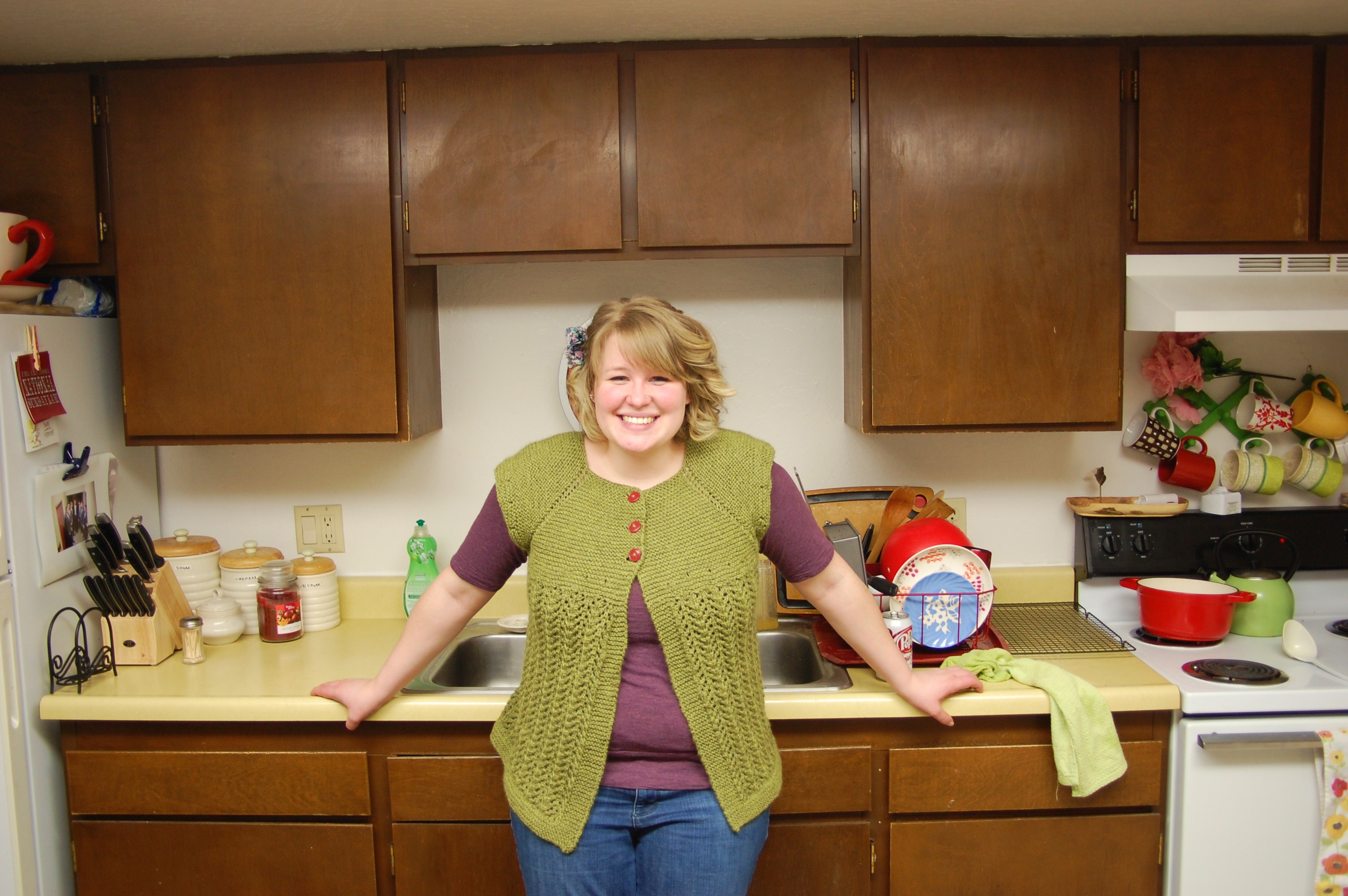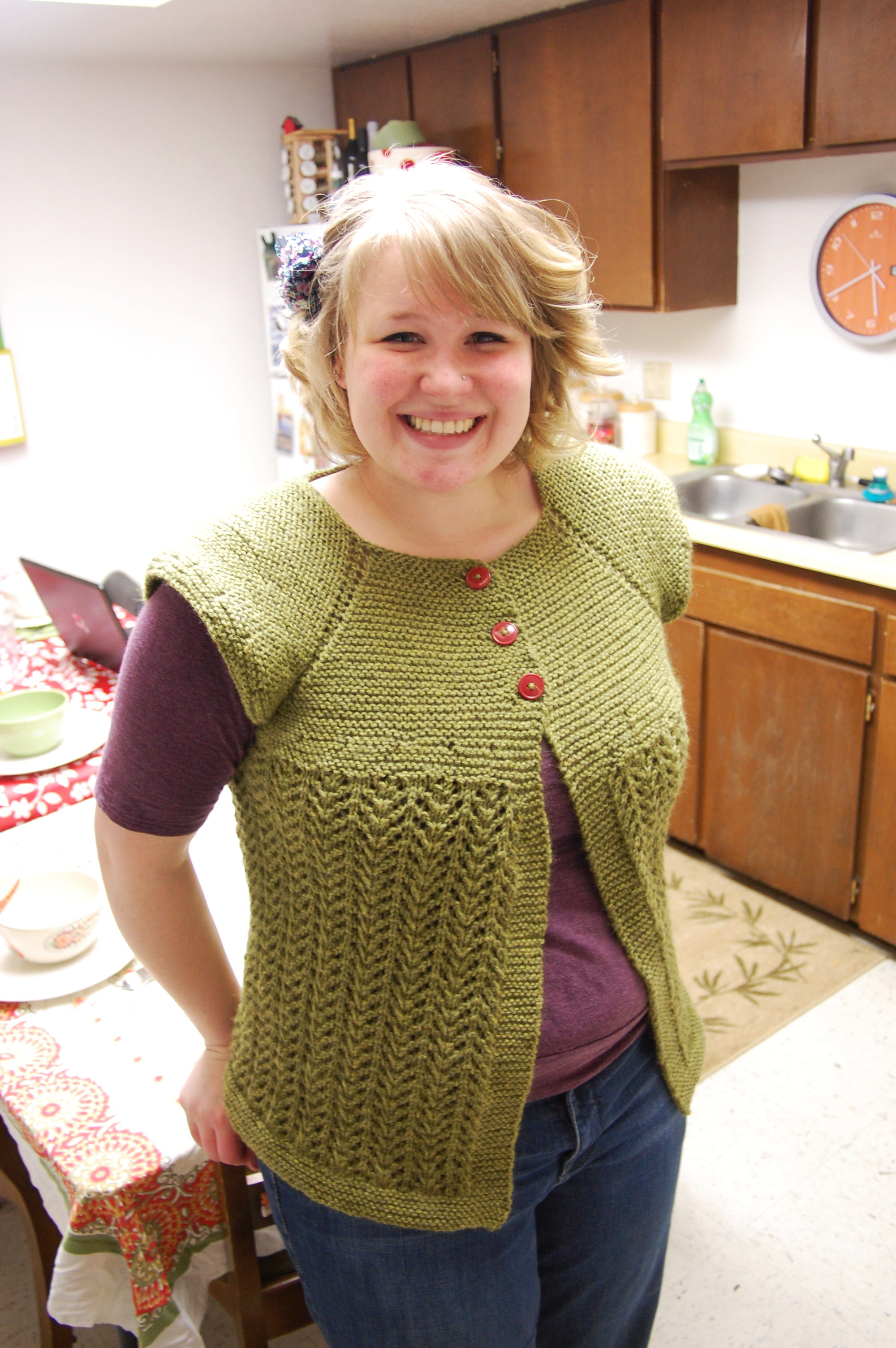 Looks nice. I like it without sleeves too. Someday I’ll knit a sweater, someday… Nice pics of you too.