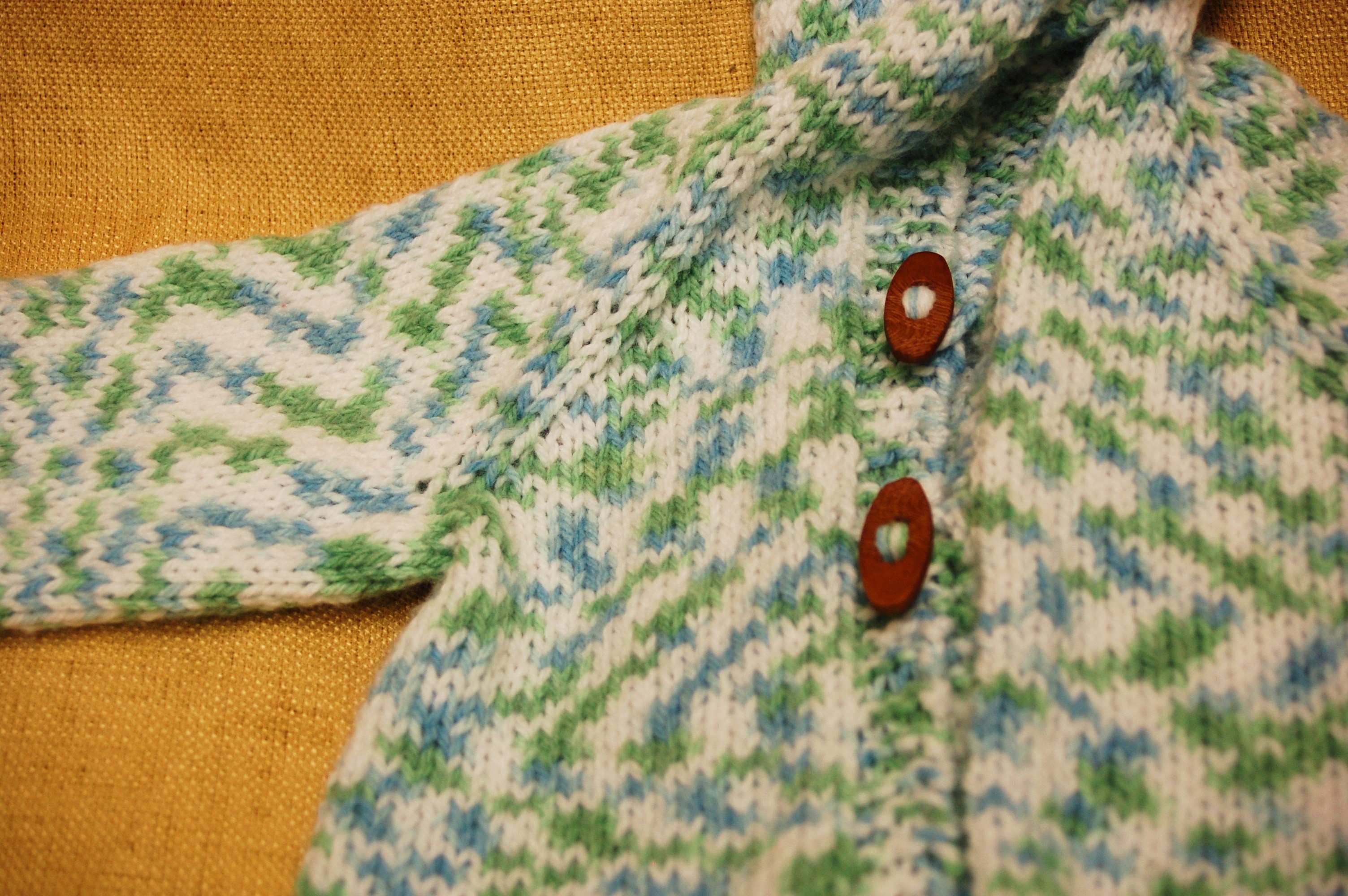 I really like that! It’s cute. I’m working on a very simple patterned sweater for Ezra and I’m really loving it so far. It’s all one piece, so that’s helpful. And I’m using Cascade Eco…you know how great that is. I’m just hoping it lasts until next fall!!