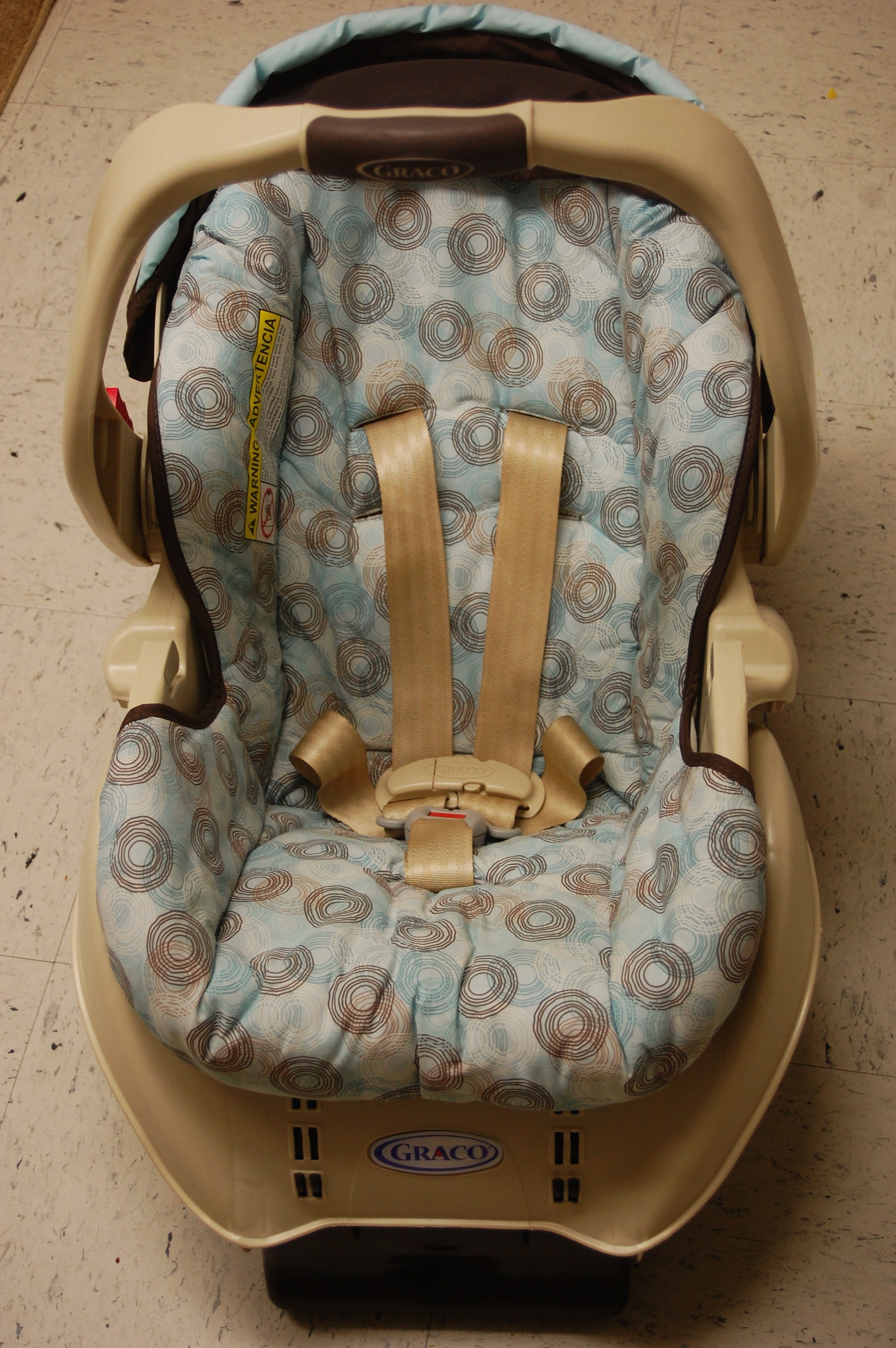 This carseat is pristine. The stickers aren’t rubbed off, there is not a crumb nor stain to be found, all of the parts are there, and while it may look a little boy-ish, if it’s a girl we’ll just throw a pink blanket over here and call it good, right?