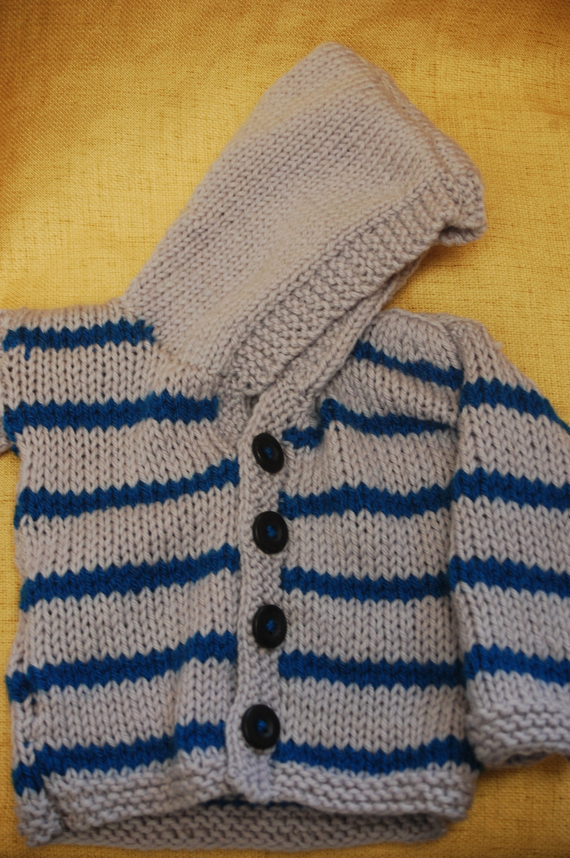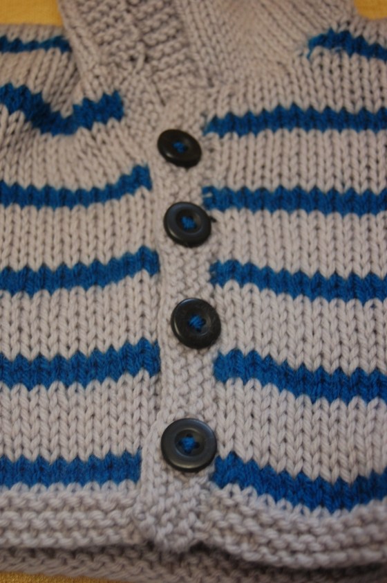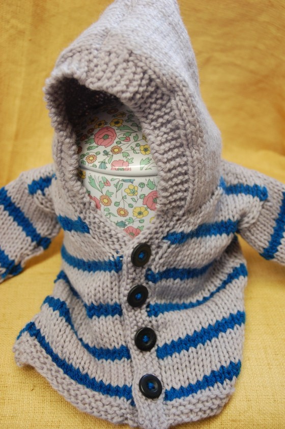 I love knitting baby sweaters. This bodes well for my little Togglebuttons, as I am sure he’ll get a whole host of knitted sweaters and outfits. At he’ll be born at the end of the hot season, so just in time to get to wear a lot of knitted hoodies, sweater vests, etc, etc. Anyway, I’ve got a few things in the works for little ToggleButtons, but there’s been a whole bunch of baby showers so I had to put those aside to make some cute things for other little babies who need knitted goodies.