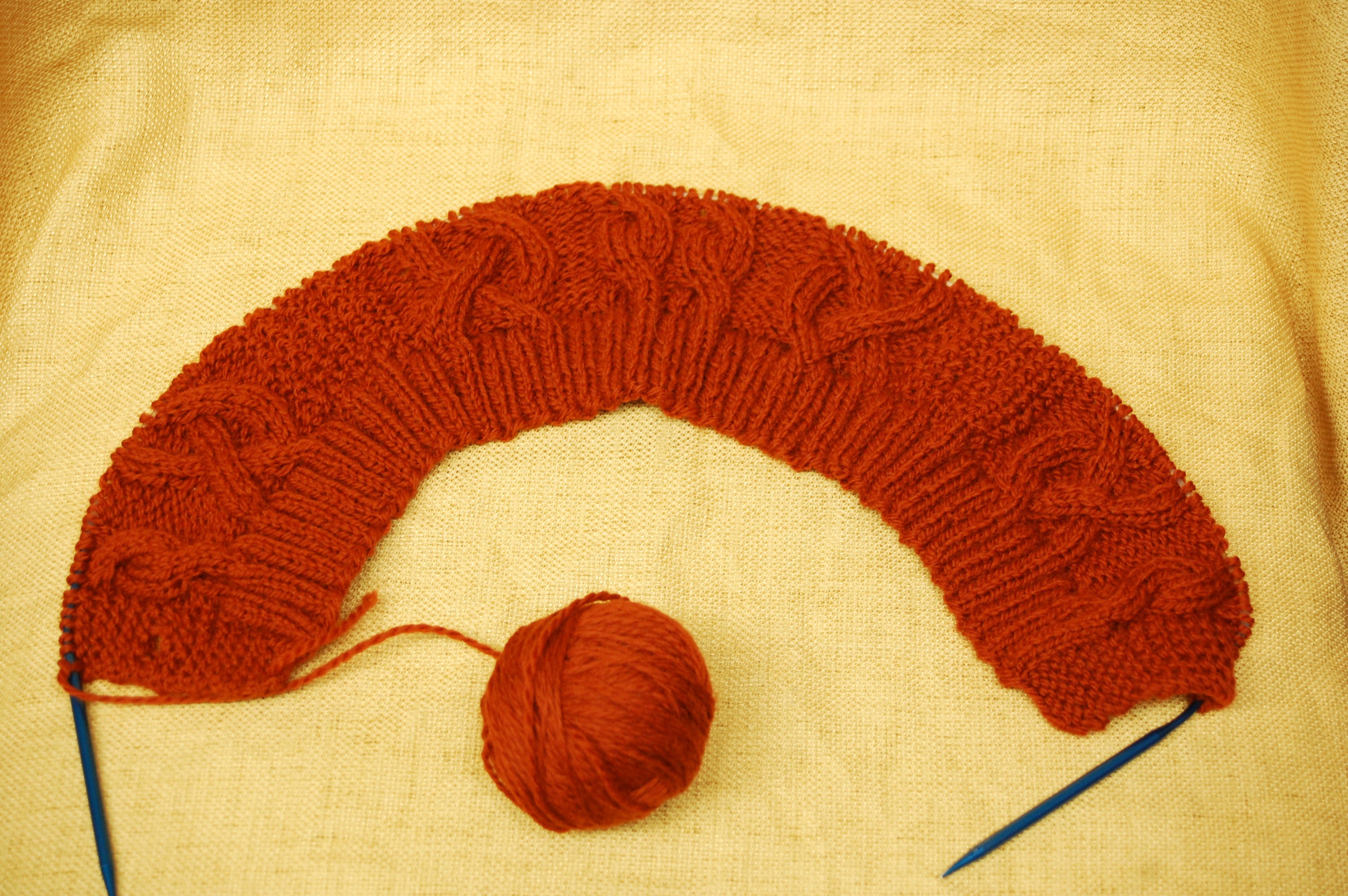 Since I finished my Butternut Aidez I’ve been wanting another somewhat challenging project. I know now that I am not going to be satisfied by just making plain knits- oh, no- now it’s going to be all about the fancy stitches and cables. So naturally I went looking for another ridiculous and challenging project. Remember my Birthday Yarn post? Well, I had three skeins of the Cascade 220 Sport in Pumpkin and I thought this would just be a perfect use for it.
