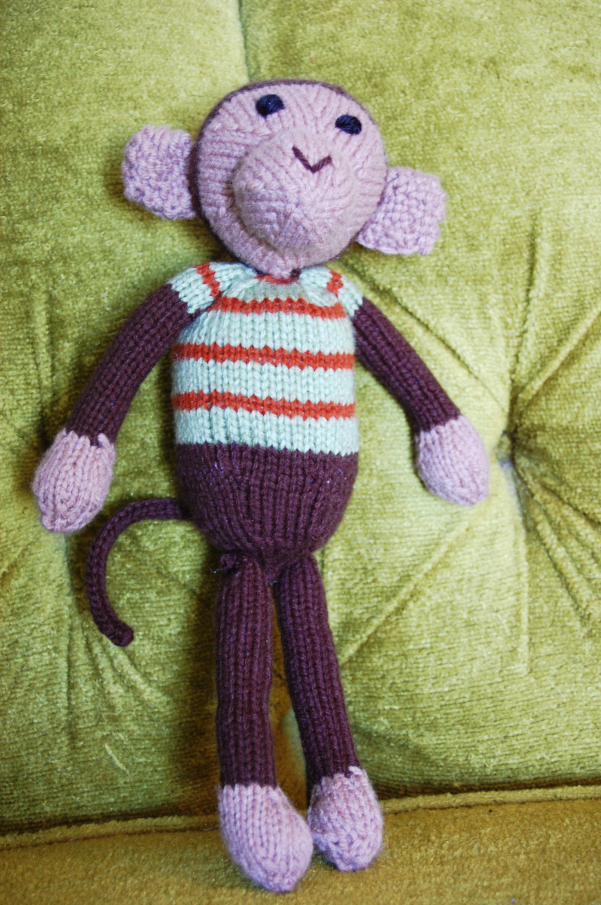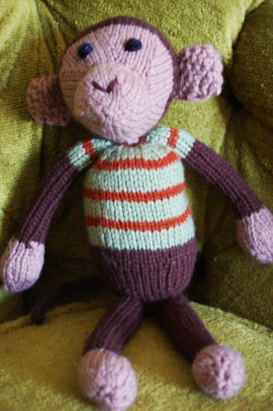 I gave this little monkey a t-shirt because I didn’t quite have enough brown yarn to finish him off.