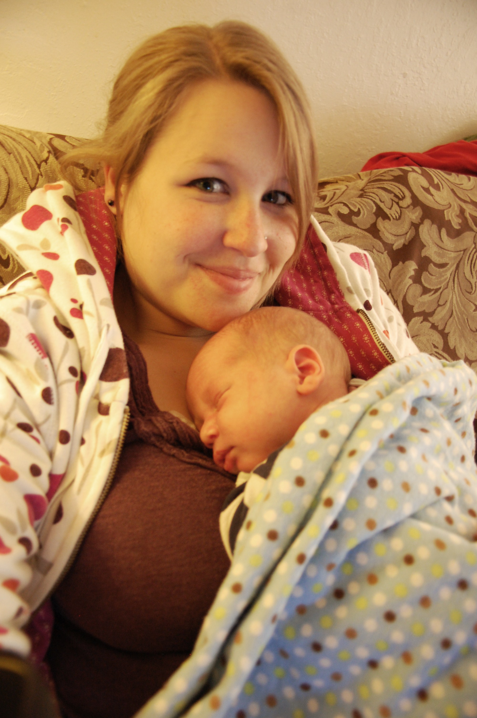 And last, but not least, here he is all snuggled with the bear his Nana (Paul’s mom) got him. Isn’t it the cutest?