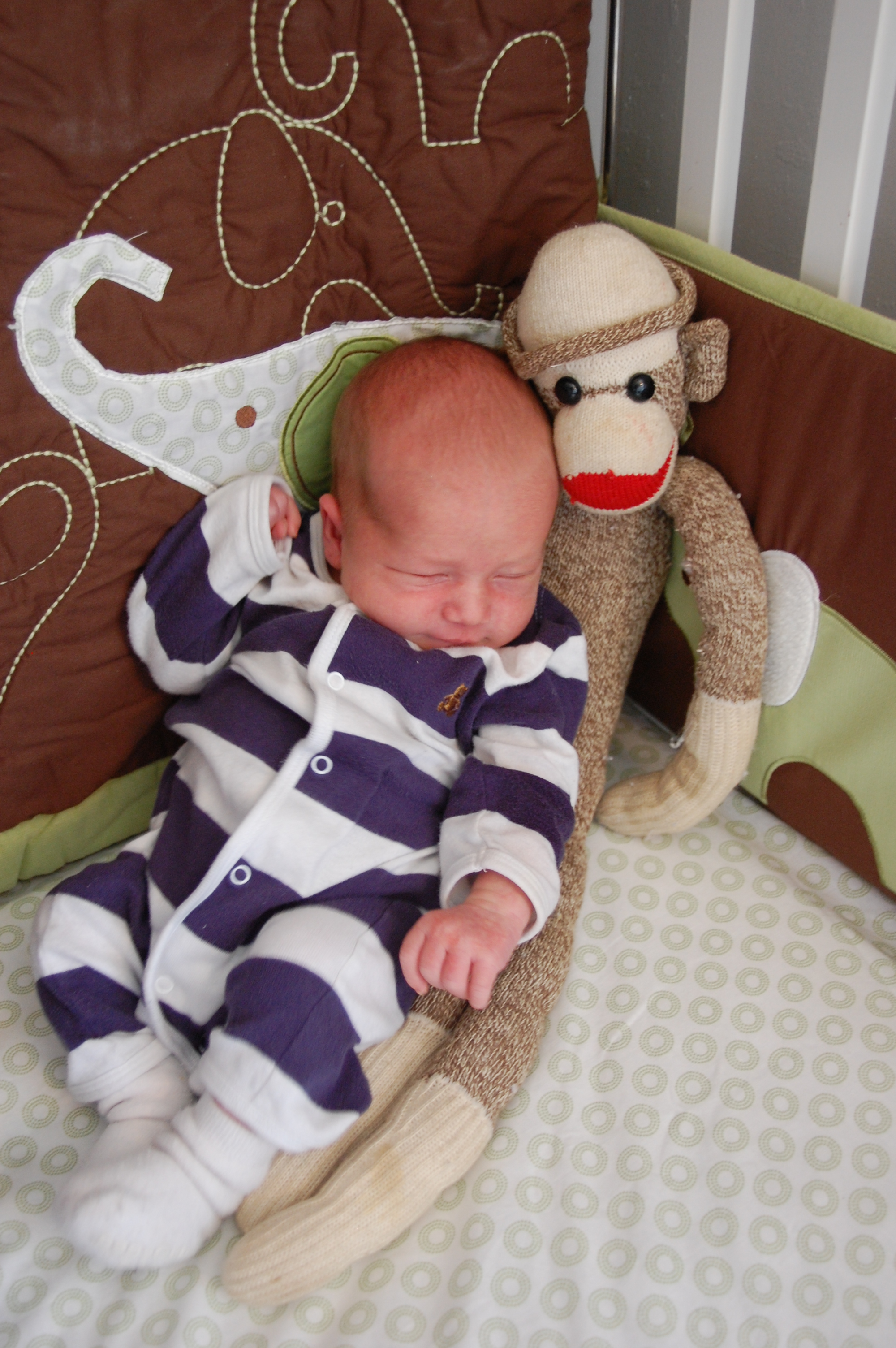 Today I introduced Sam to his little crib buddies. He didn’t seem all that impressed.