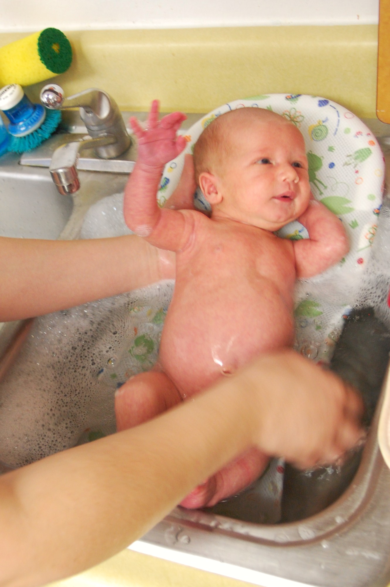 I was so glad when his cord fell off so we could give him real baths! He did NOT enjoy his sponge baths, but to be honest those don’t sound so much fun (brr!)