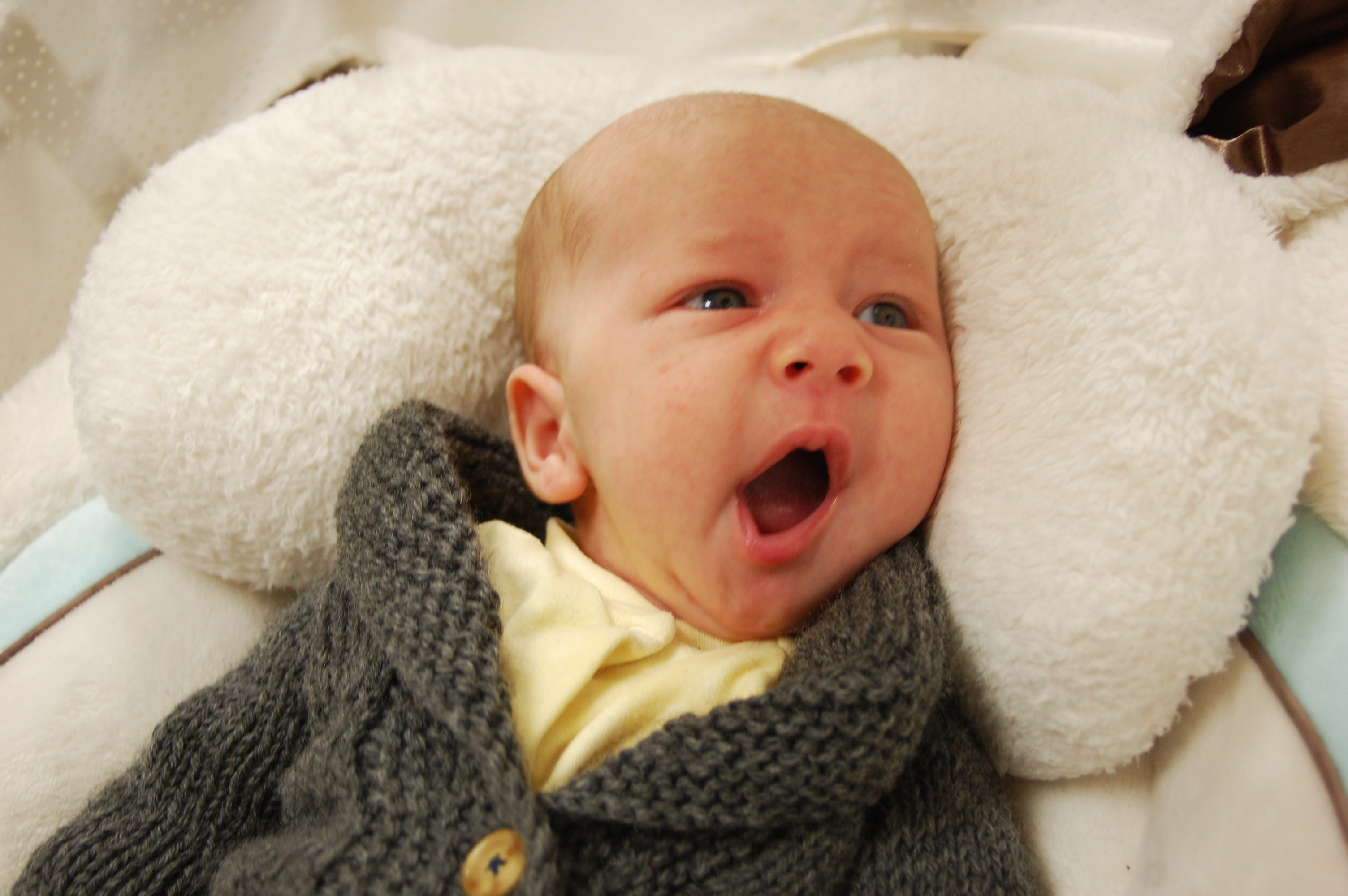 I present to you, the Baby Sophisticate, as modeled by Sam (even though it’s not for him).