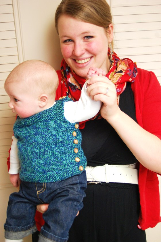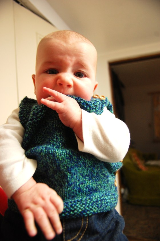 Oh, Ali, I can’t get over how much he looks like you!! And darling vest. Now that the Christmas craziness is over I’m becoming inspired to knit my little ones something fun… we’ll see if it actually happens, though. π