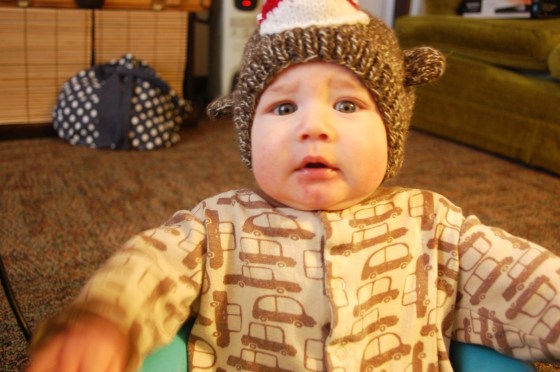 Anooother Custom order! A Sock Monkey Hat! Sam was not quite as willing of a model this time.