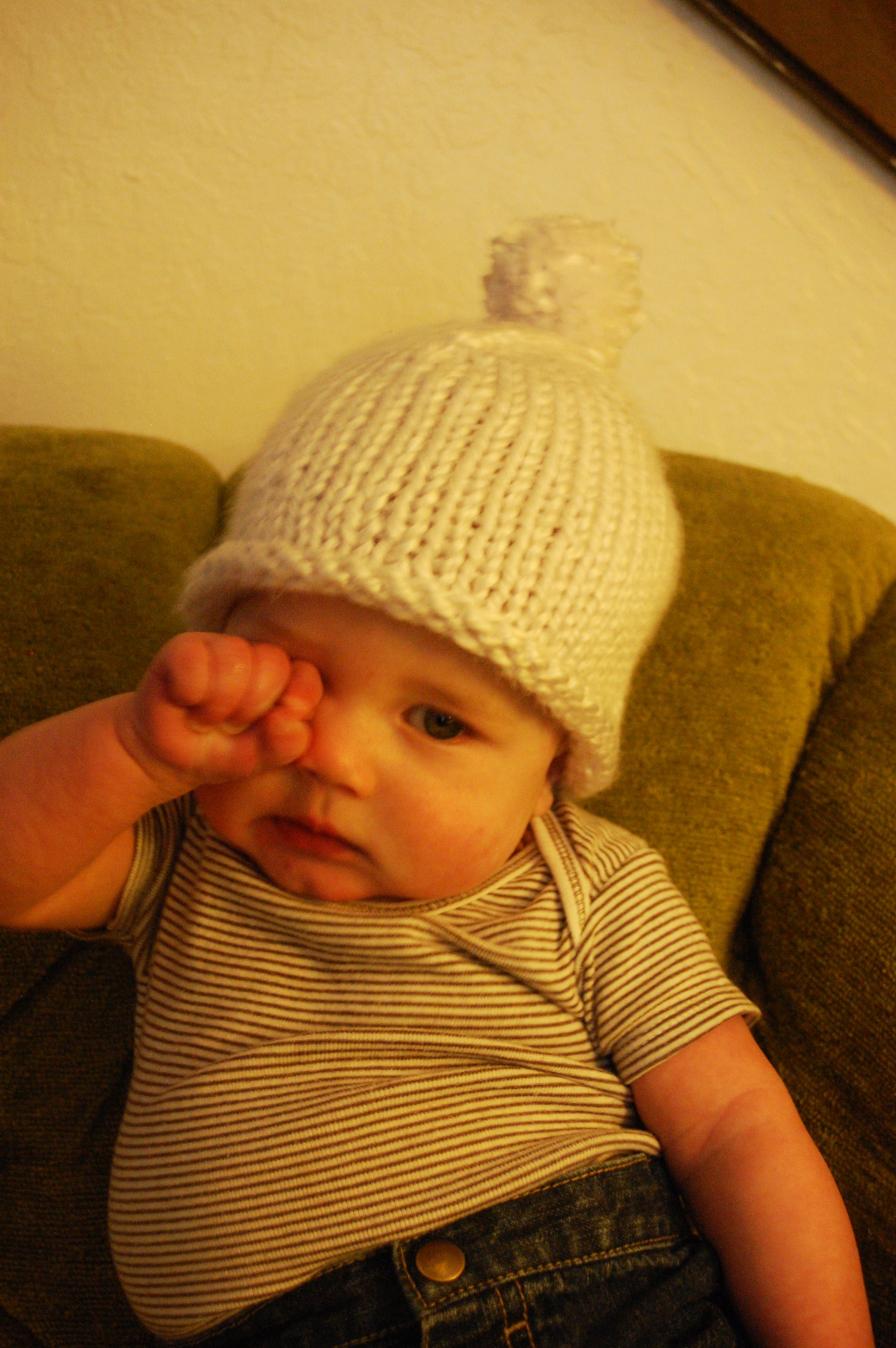 Sam is kindly modeling a hat I made for a new baby of our friend Megan, welcome baby Penny!