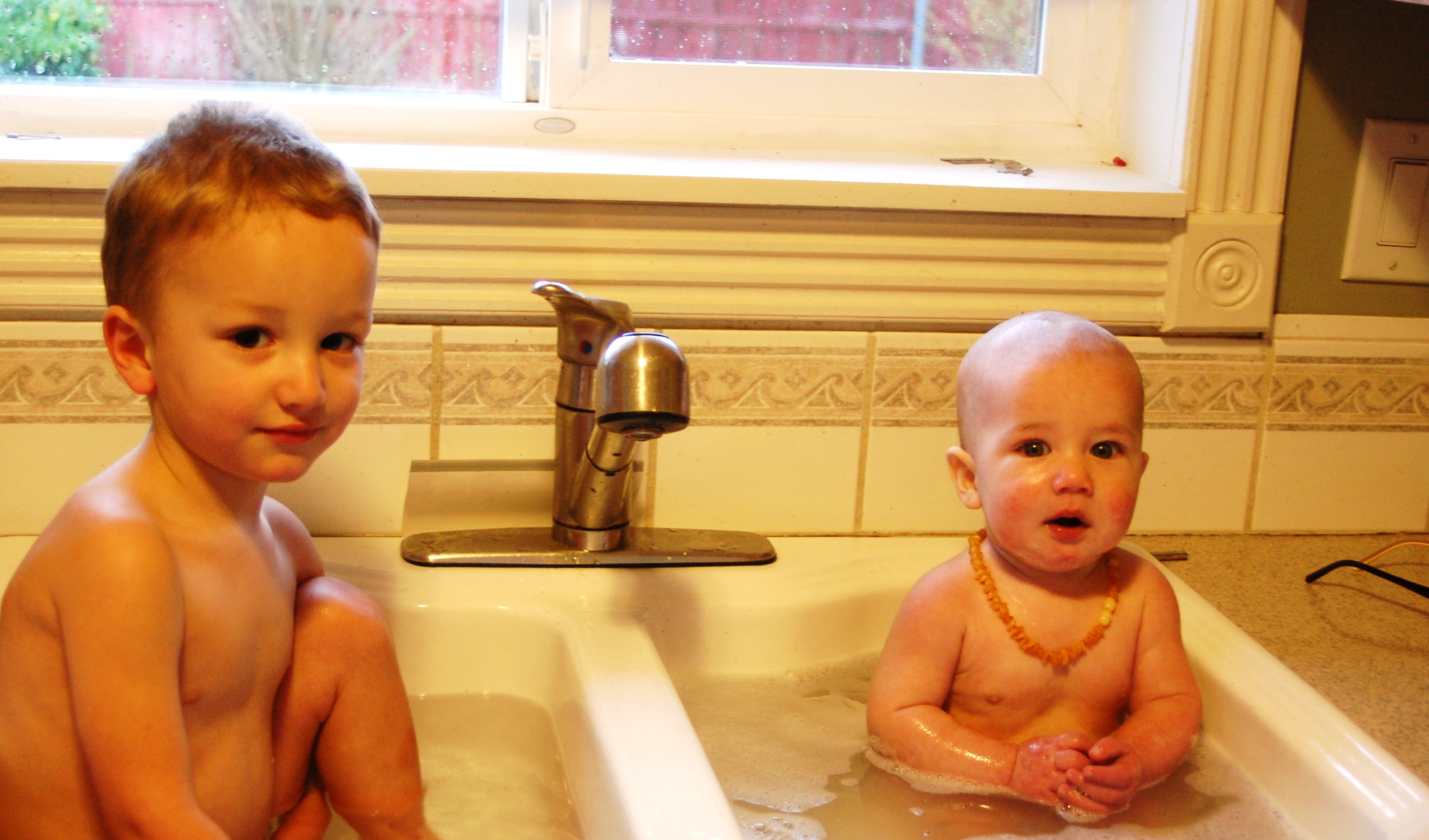 Or in a sink, I guess. Sam has recently decided that he can sit on his own, and this has greatly improved his quality of life!
