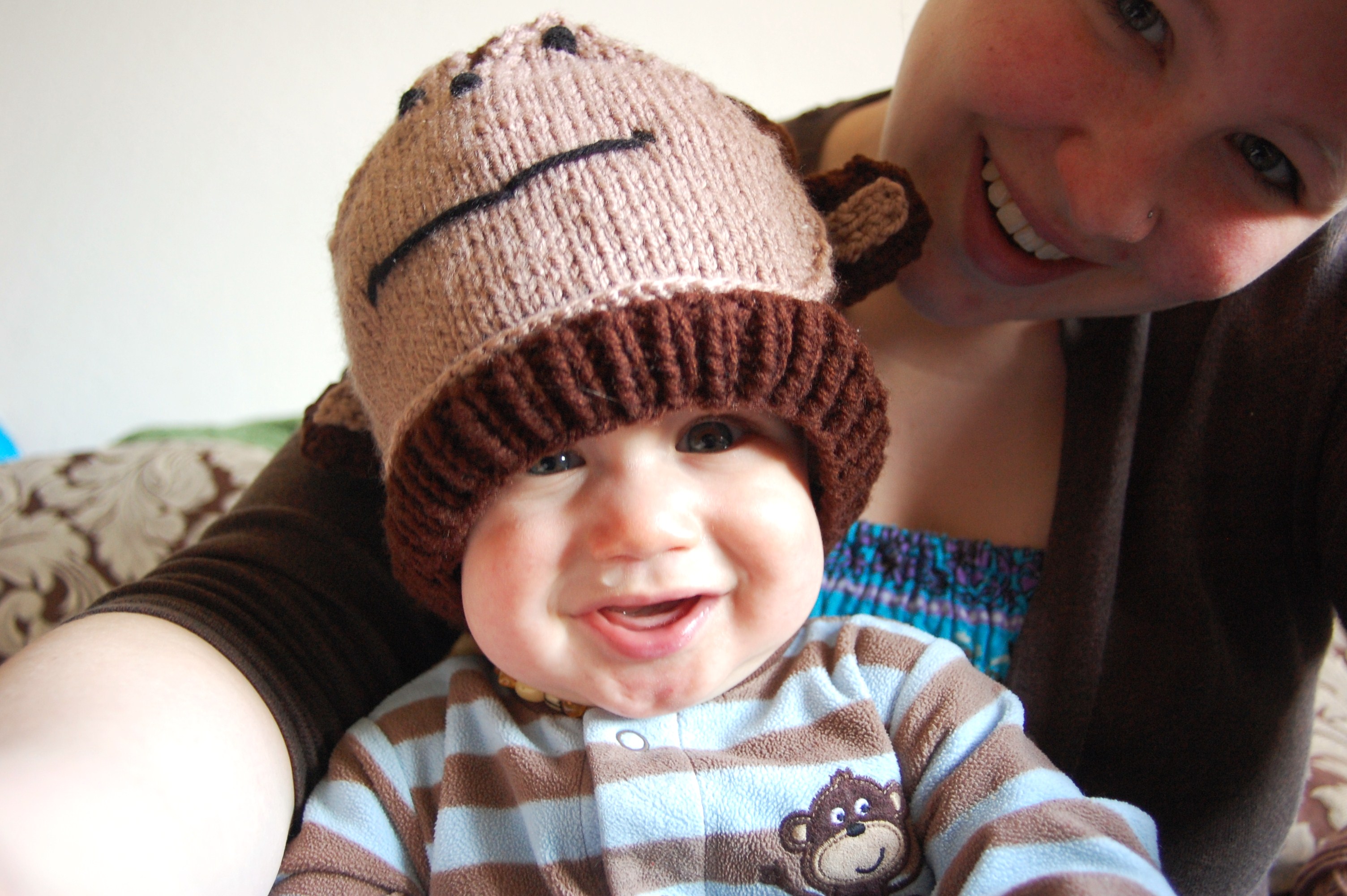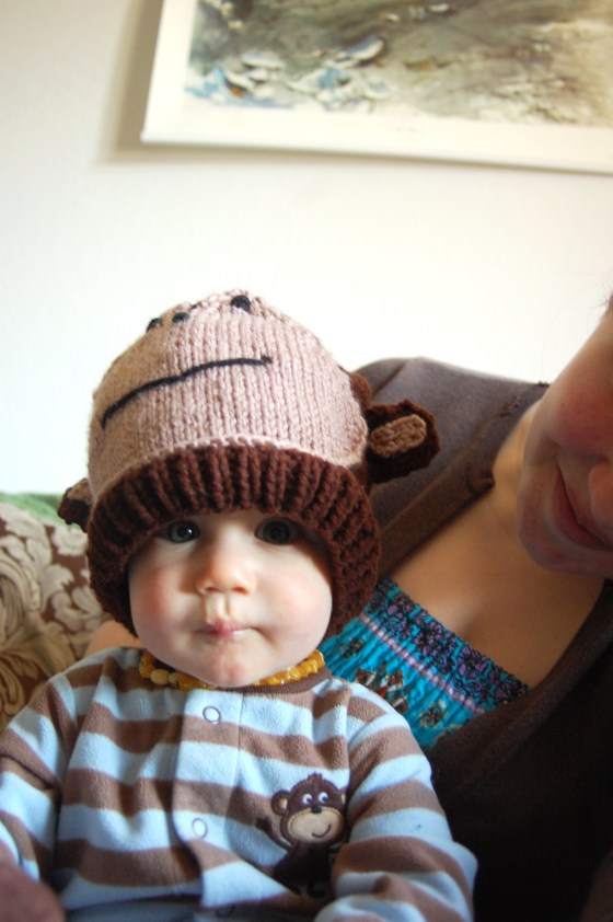Sam, even though he is sick with a cold, was kind enough to model this monkey hat for me. And he was even wearing his monkey jammies!