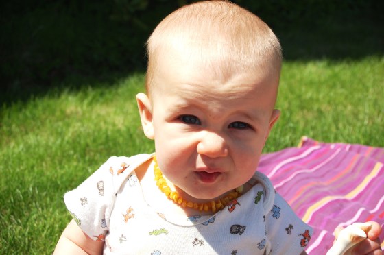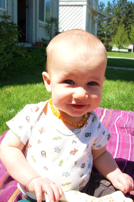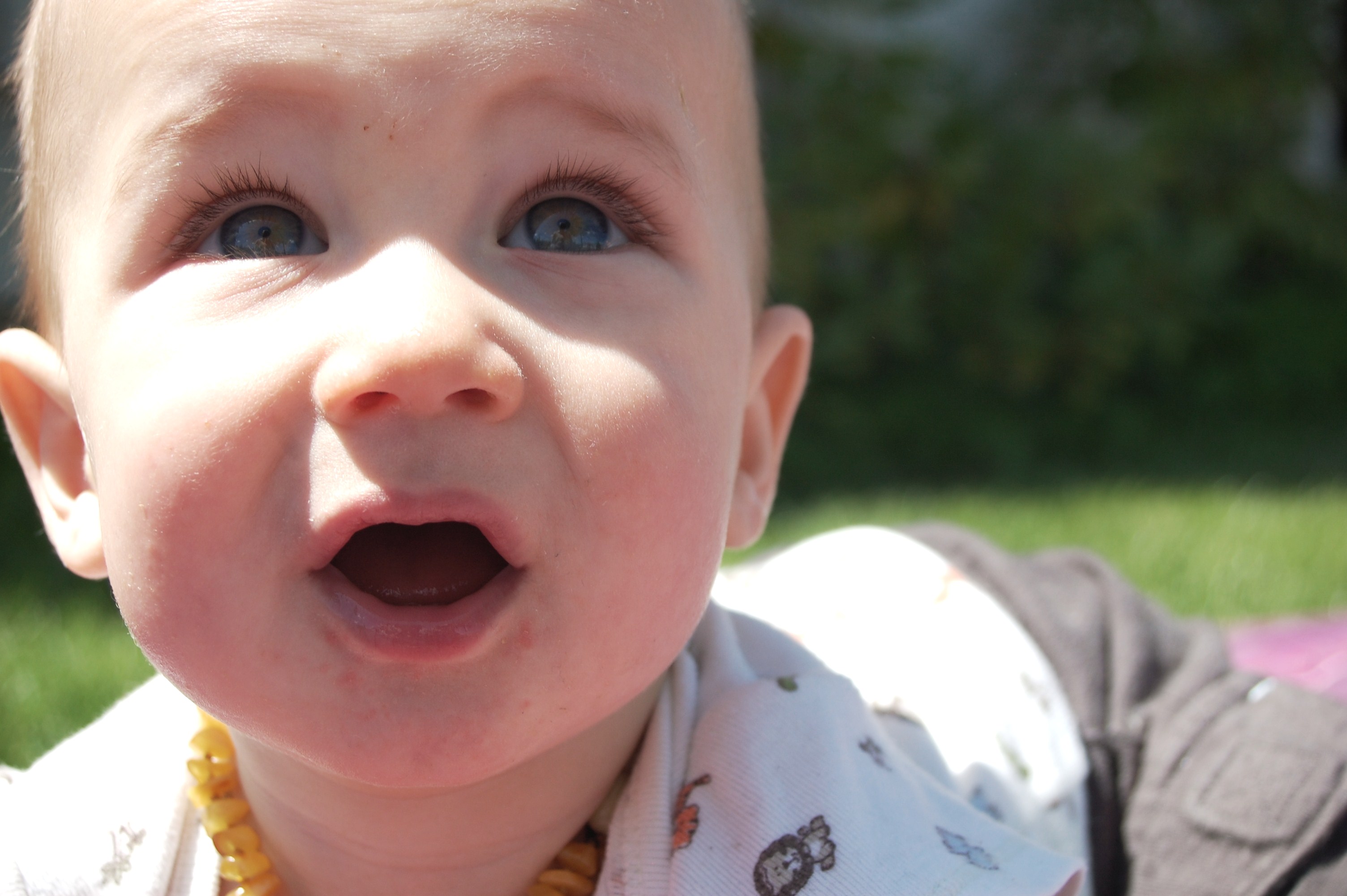 Food: Sam really wasn’t interested in babyled weaning. But his doctor wanted me to make sure he was eating enough, since he wasn’t gaining weight, so we are back to purees. Sam LOVES carrots and sweet potatoes and applesauce. He will happily eat any or all of those anytime. It’s handy because whenever we are going somewhere (or out to eat) as long as I remember to bring some food with us he is a happy camper now. Also, he really likes Cheerios.
