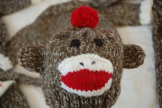 I greatly underestimated the need for sock monkeys. I had no idea there would be this much interest in sock monkey costumes, so far I’ve sold 7 and I’m turning away orders left and right, simply because of time constraints. I got a lot of compliments on Sam’s last year, but I never knew people would be willing to shell out cold, hard, cash in return for them. Turns out, people are willing to pay for one of a kind, hand-knit costumes… quite a few people!