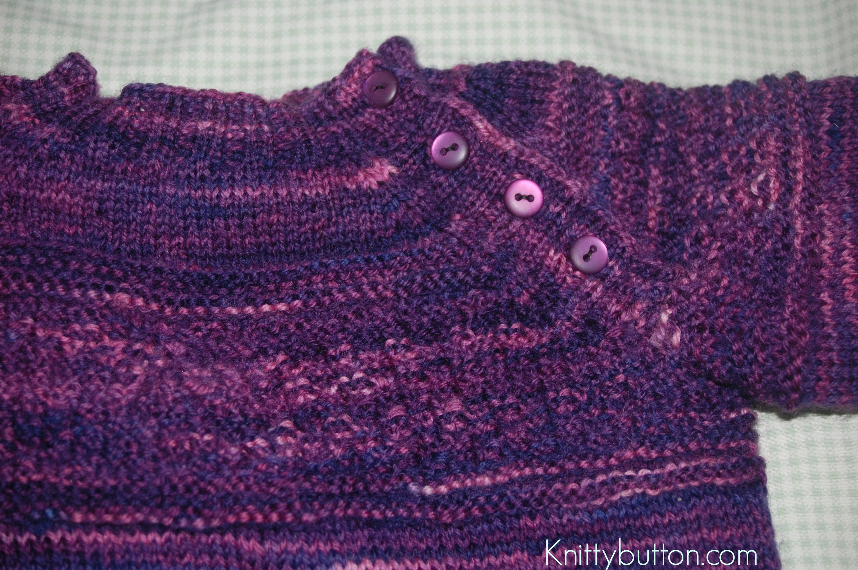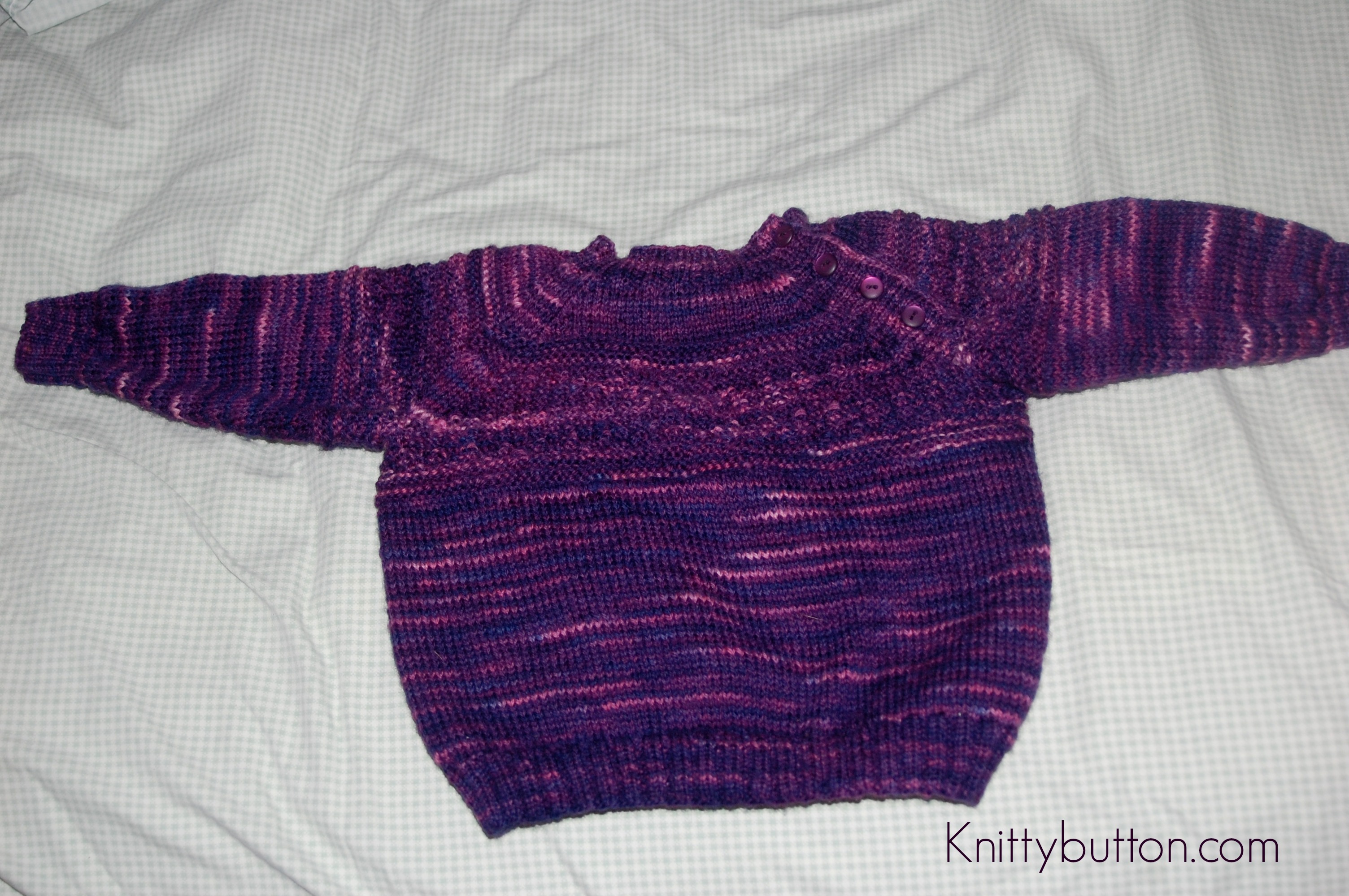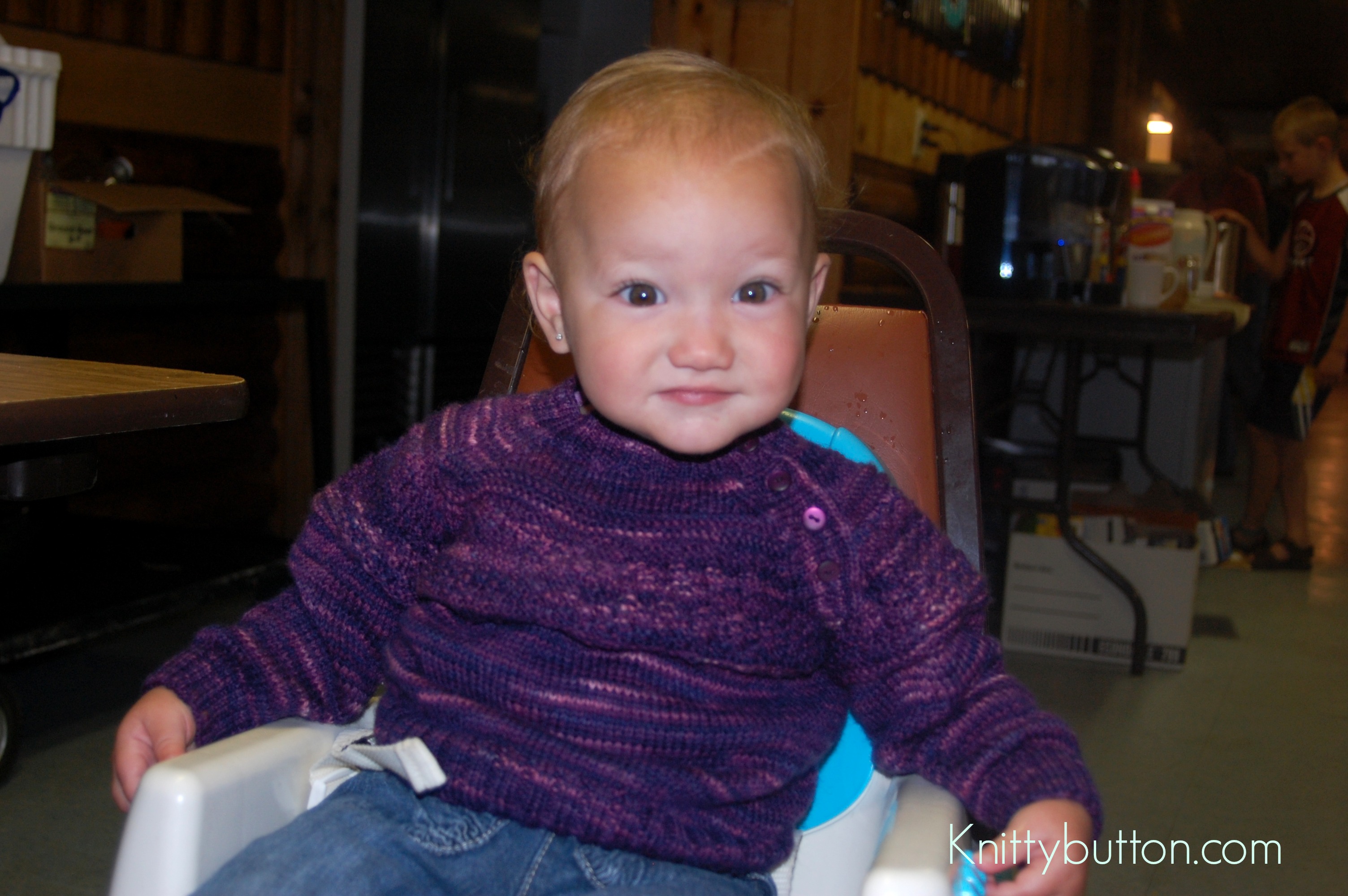 I made this sweater for Josetta’s first birthday. I love, love, LOVED this sock yarn and had to come up with a somewhat simple pattern to show off the beautiful yarn. I chose “McDreamy“, it seemed fairly simple and straightforward. It is a great pattern, if you are looking for a good raglan sweater. I prefer top-down raglan, but this is bottom-up style, which is fine, just not my favorite. I might try to adapt it into a top-down pattern, since I am pretty sure I’ll need to make this one again (I already made Sam one, actually! Haha)