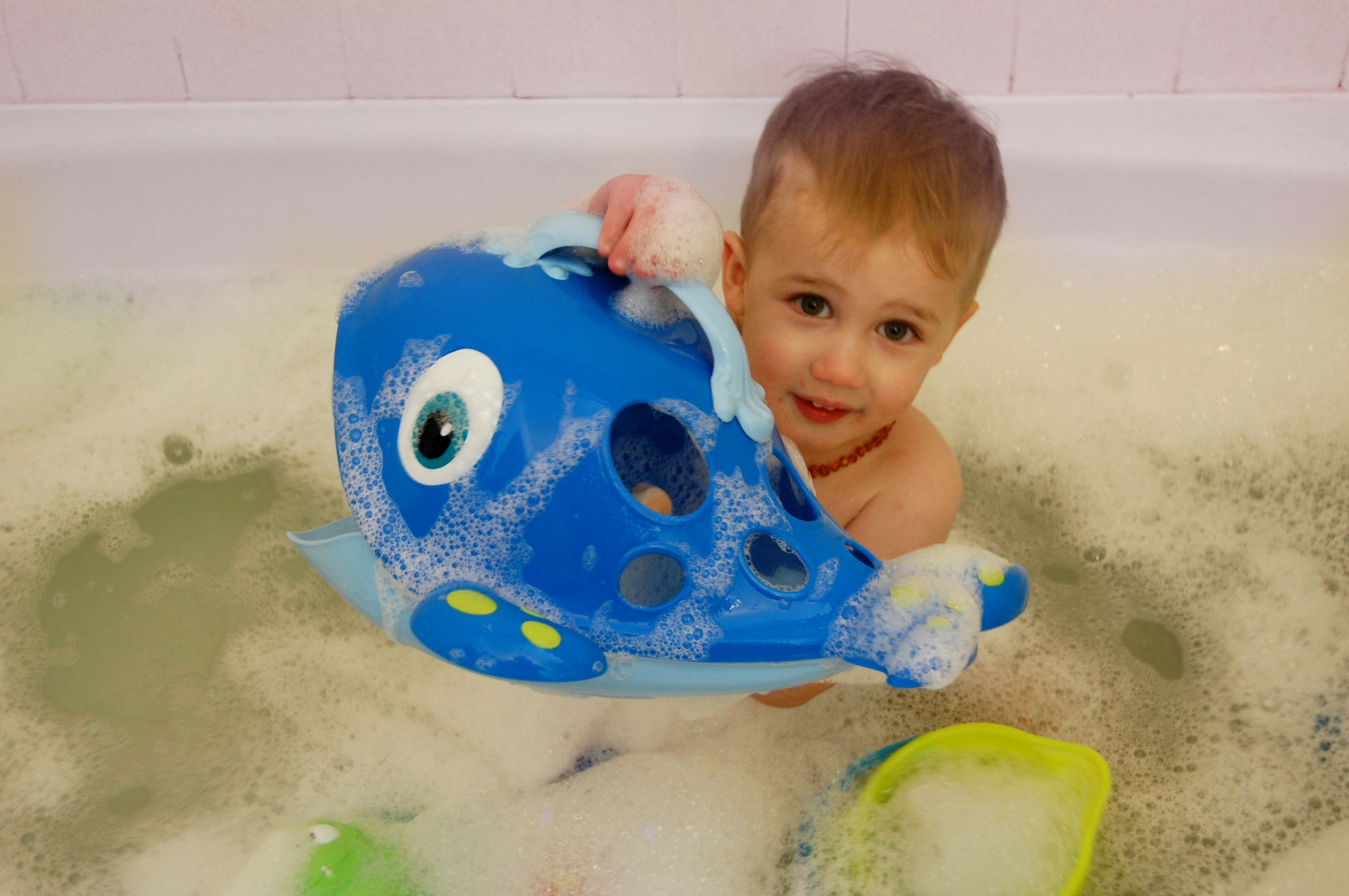 We received this hilarious whale bathtoy scoop to review, and Sam is absolutely in LOVE with it. He calls it his “wheel” (His name for whales) and it’s now a bath time staple! I love it because it gives us a place to keep all of the bath toys in one place, and lets them dry without getting moldy or gross, and keeps them all in the tub, so they’re close at hand when we have bath time, since we don’t have a ton of bathroom storage space!