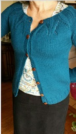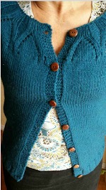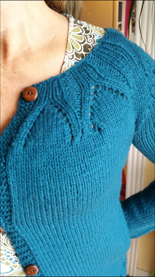 m really excited on how it turned out. I loosely based it on the Cadence Sweater,but obviously made some pretty big changes to the pattern, turning it into a cardigan instead of a pullover, and changing the diamond shape into more of a horseshoe shape. My mom had some really amazing rosewood buttons and was kind enough to let me use them to put onto her sweater- they are so smooth and gorgeous!  I used Homestead Yarn, purchased at The Yarn Underground, and for a size small used up almost exactly four full skeins. Raveled here.