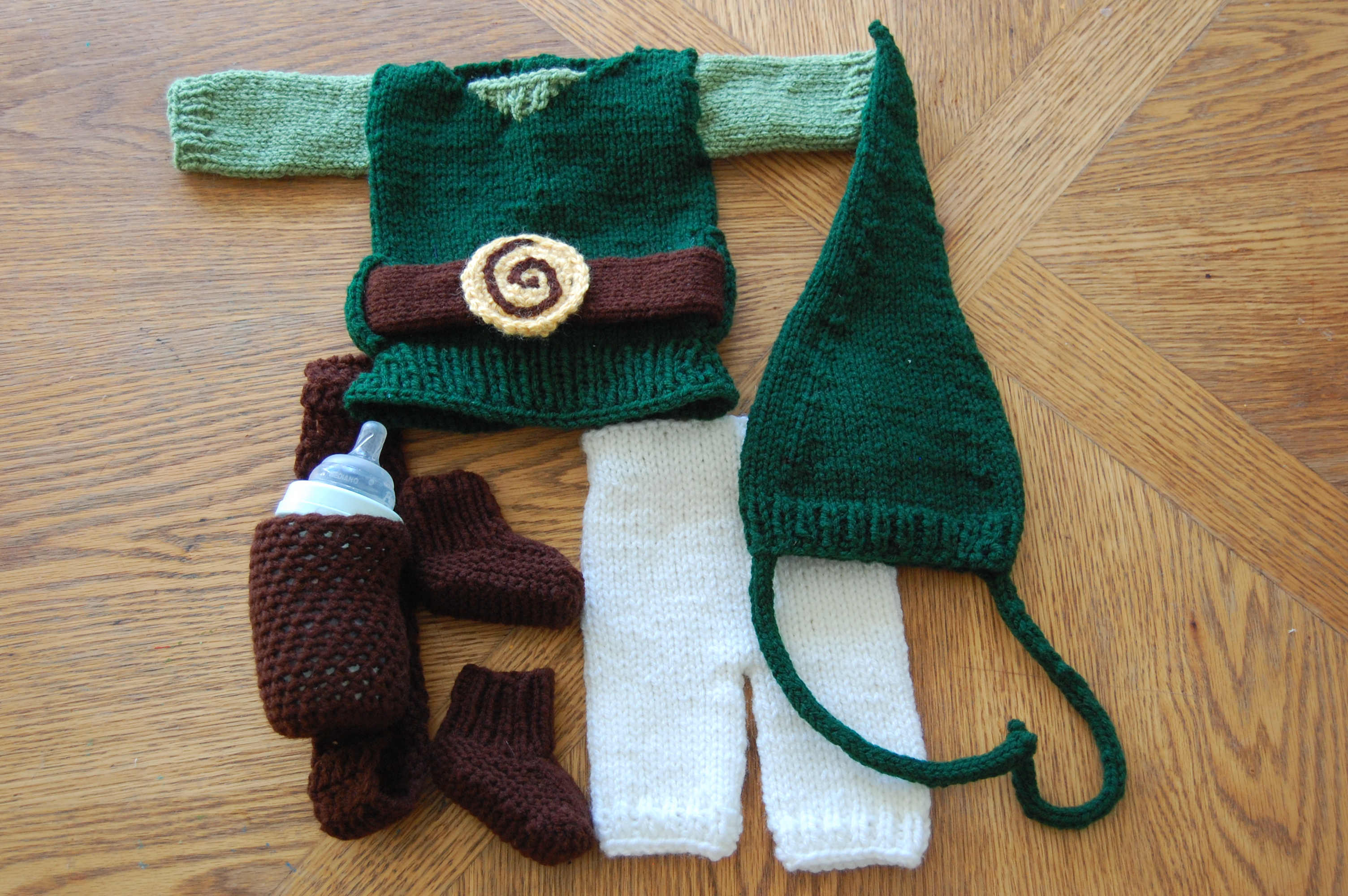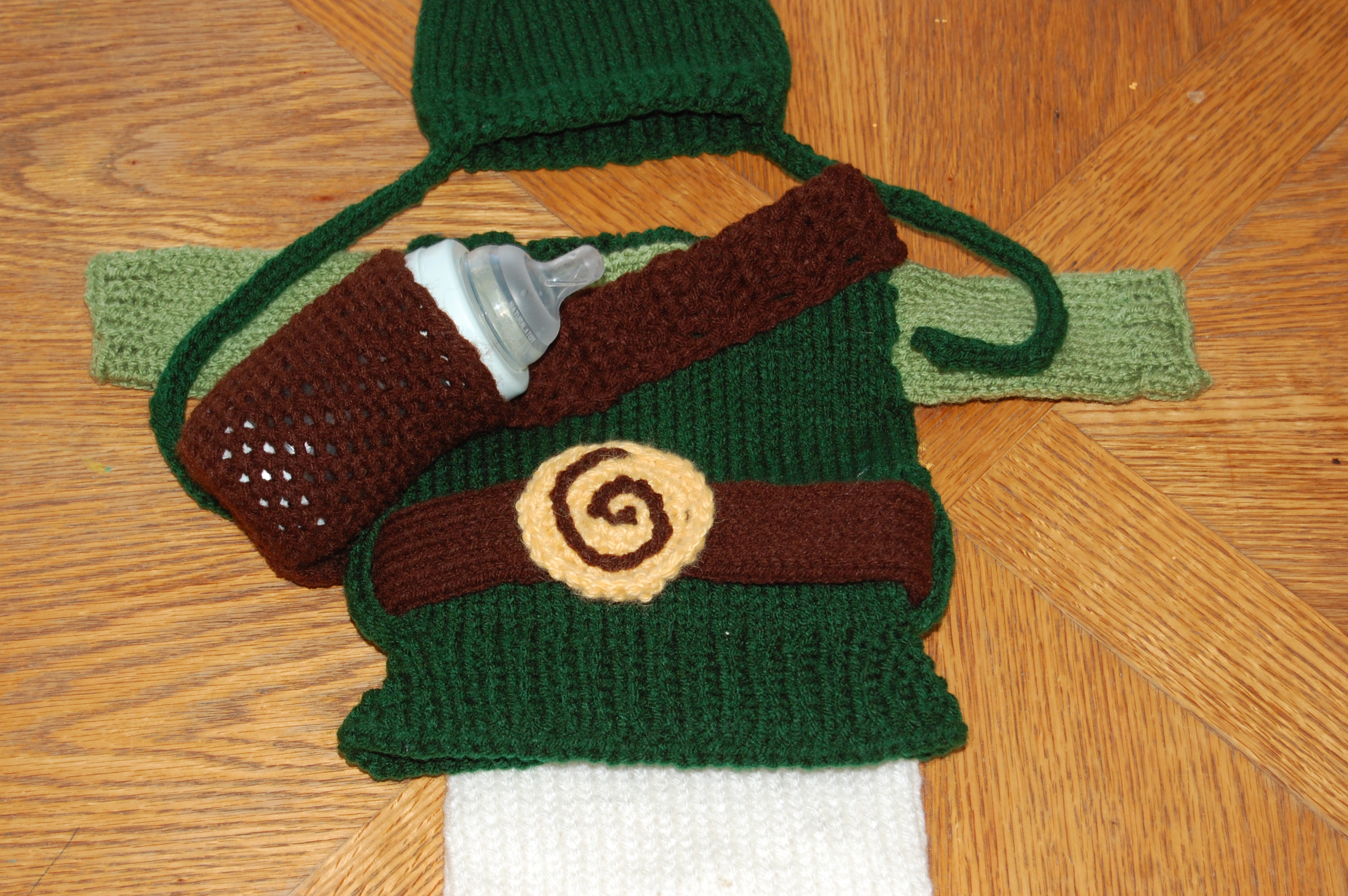 These aren’t terribly new pictures, but I hadn’t shared them on here, so I though I’d put them up. I got a custom request for a Link Costume (From the Zelda video game) And I thought it turned out really cute! They even sent me a few pictures of the newborn recipient wearing it!