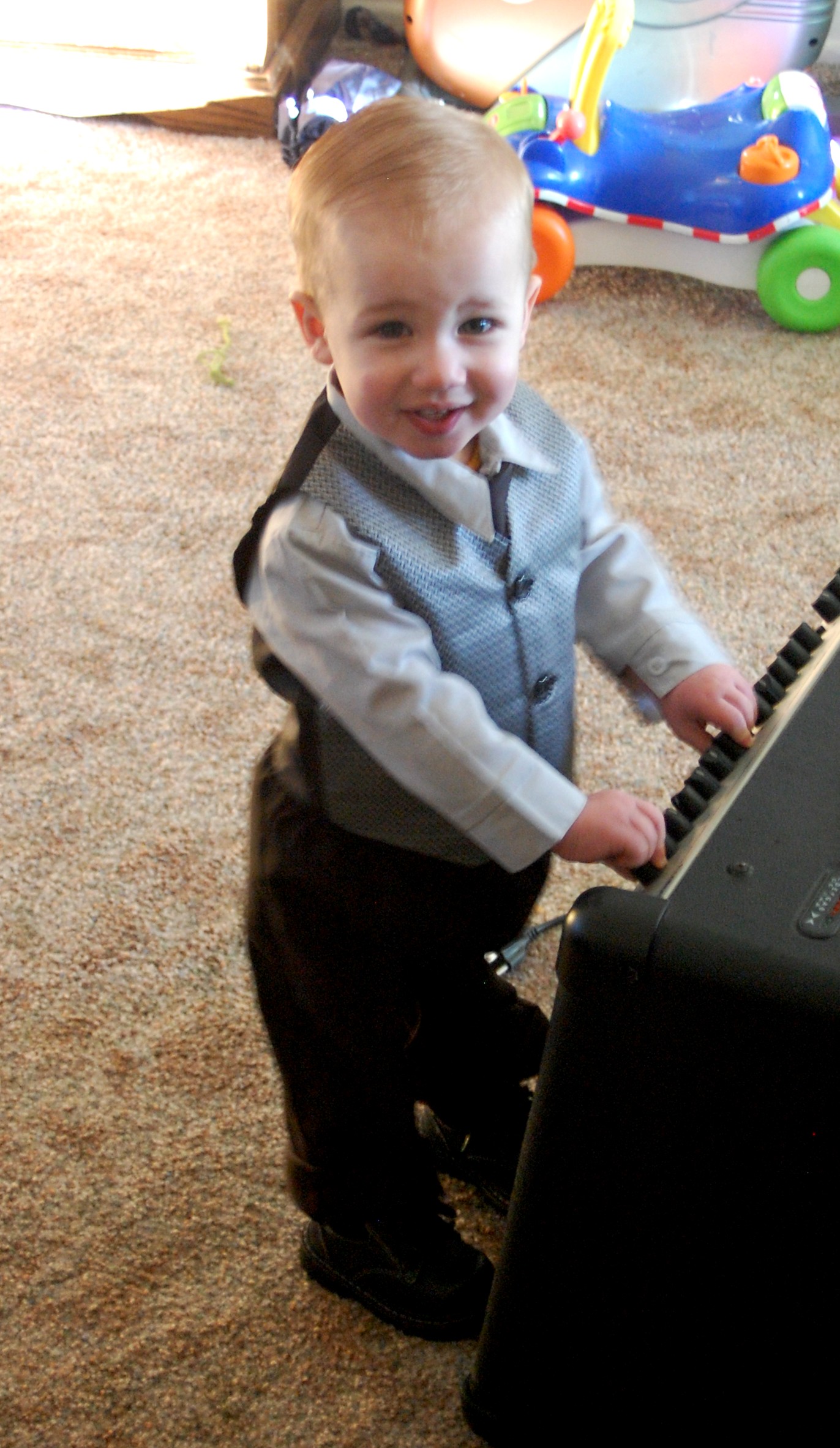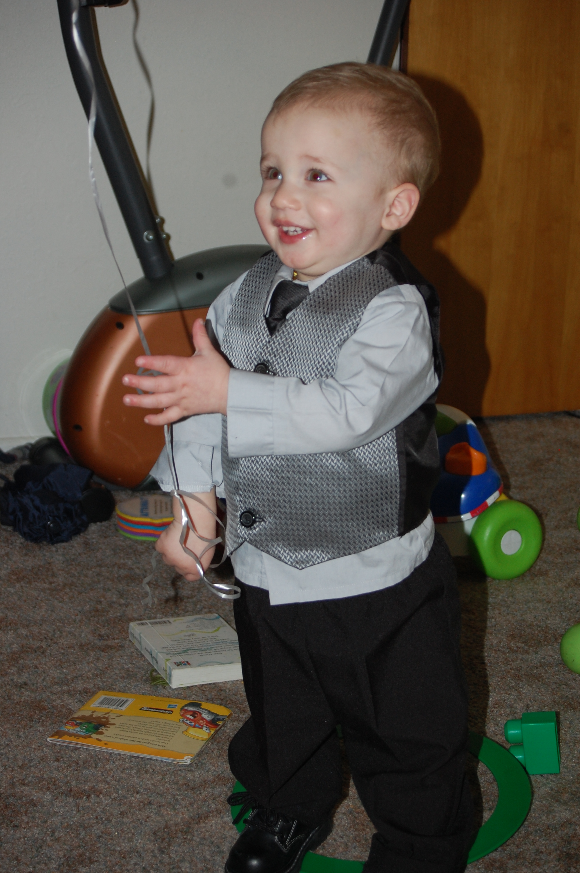Sam wanted to try on the Sock monkey costume that was being mailed out this week, but once I got it on him he got a little sullen and decided that maybe it wasn’t as fun as he thought. I think it looks good on him, though!