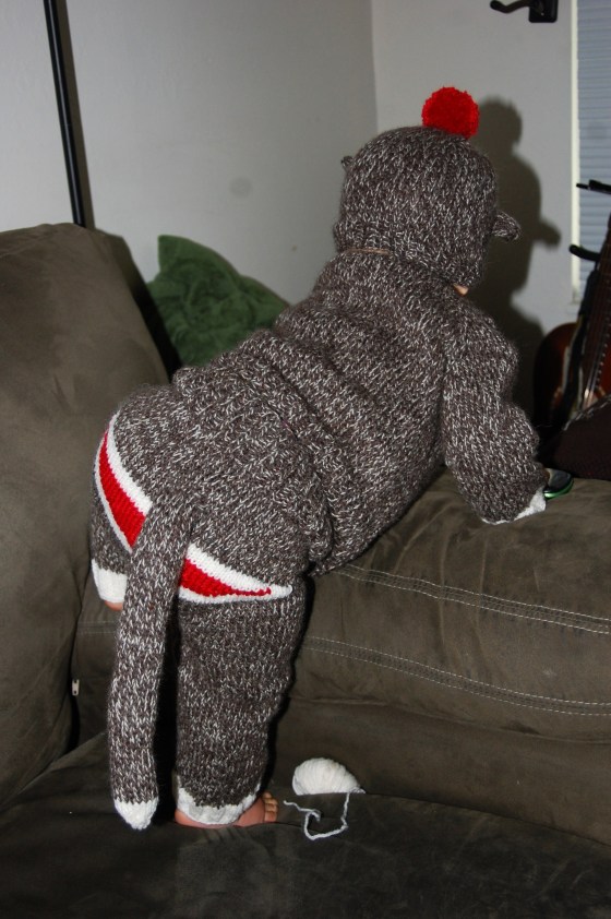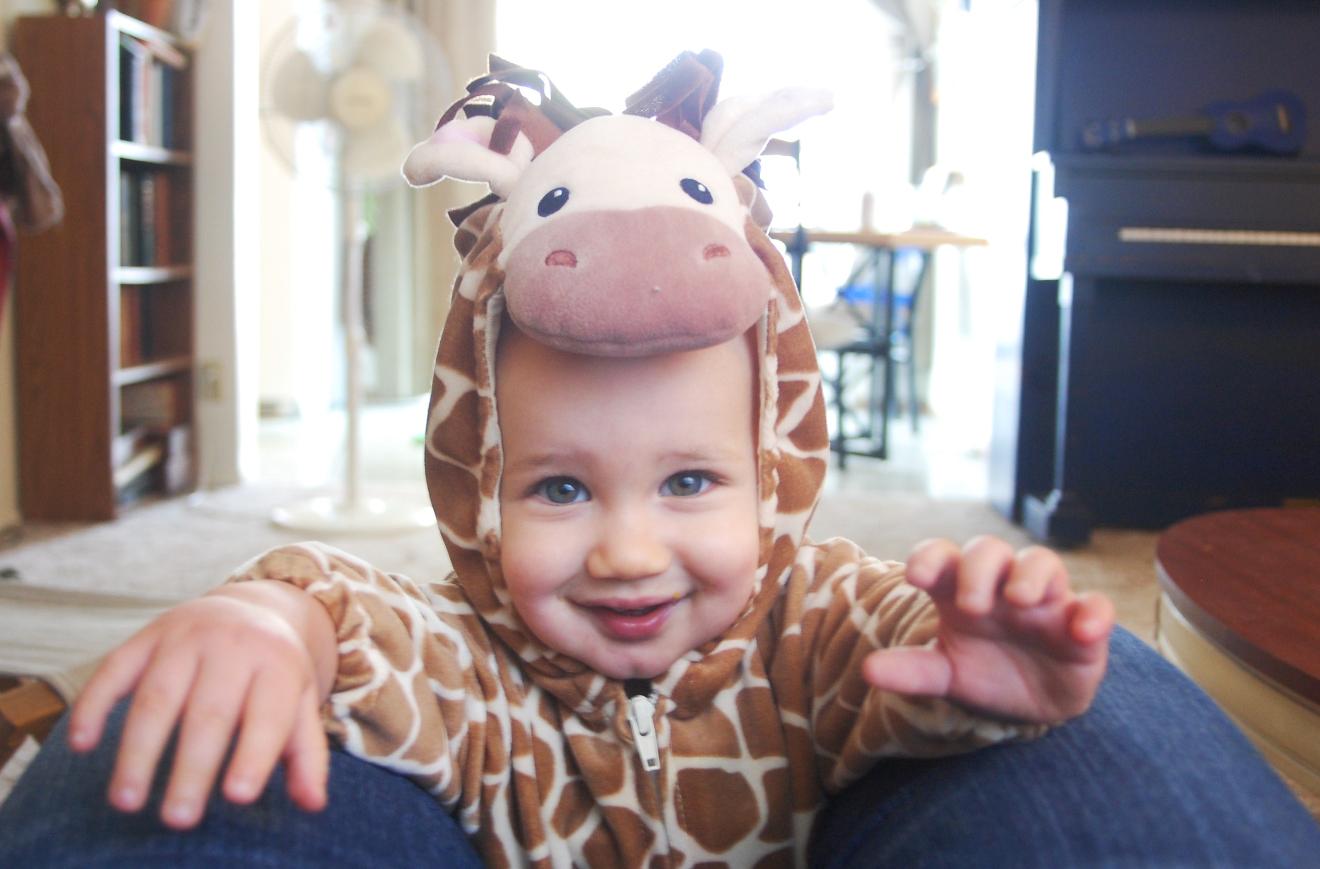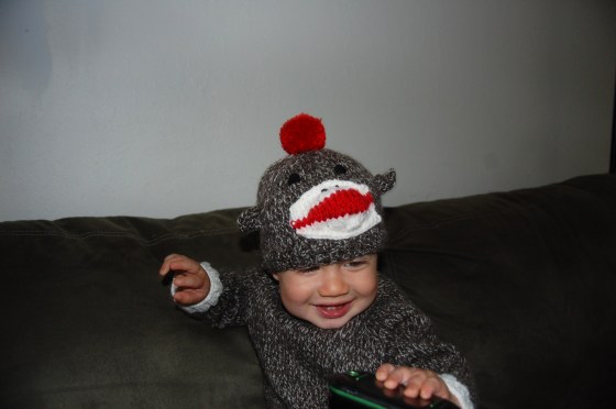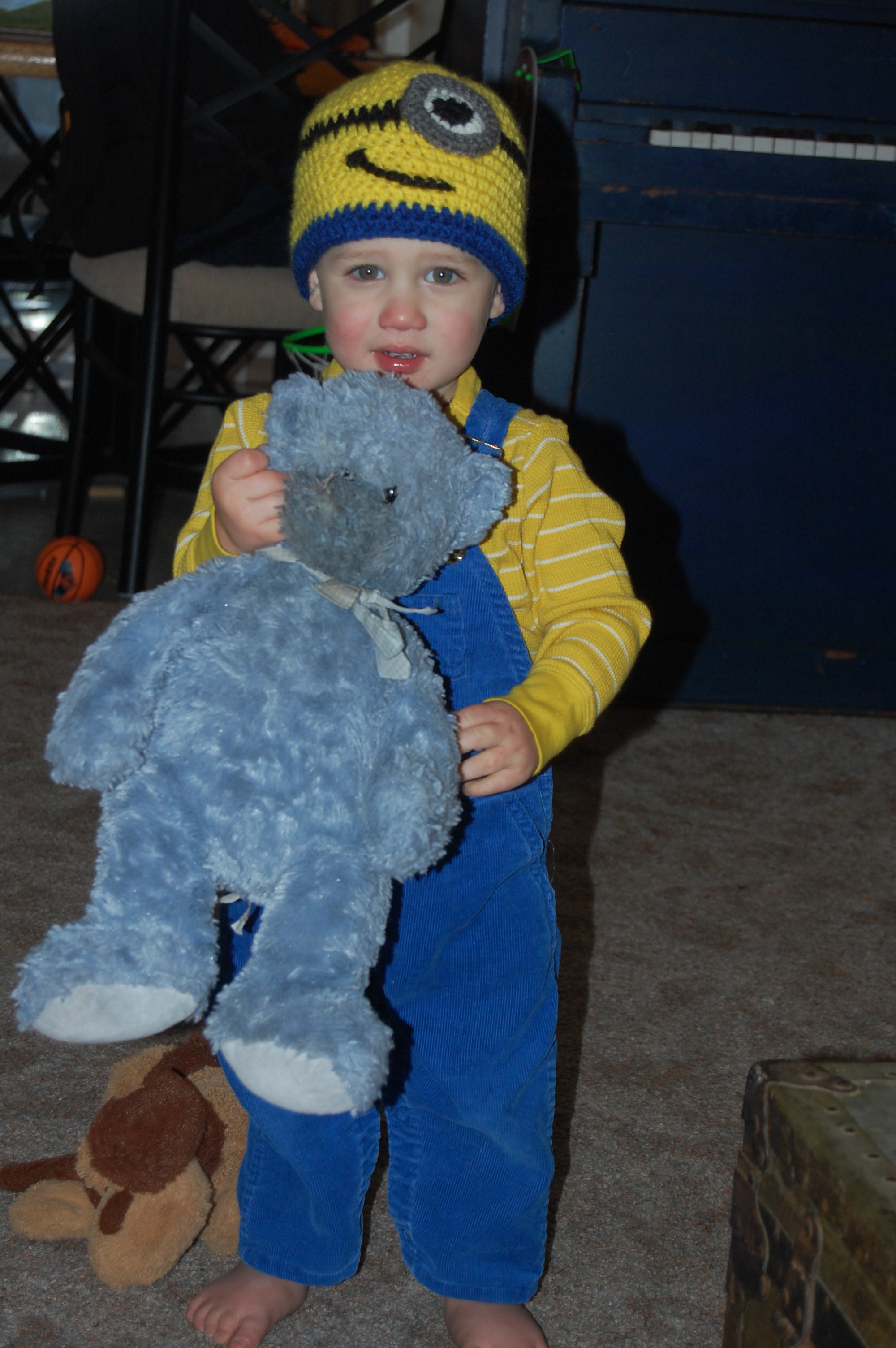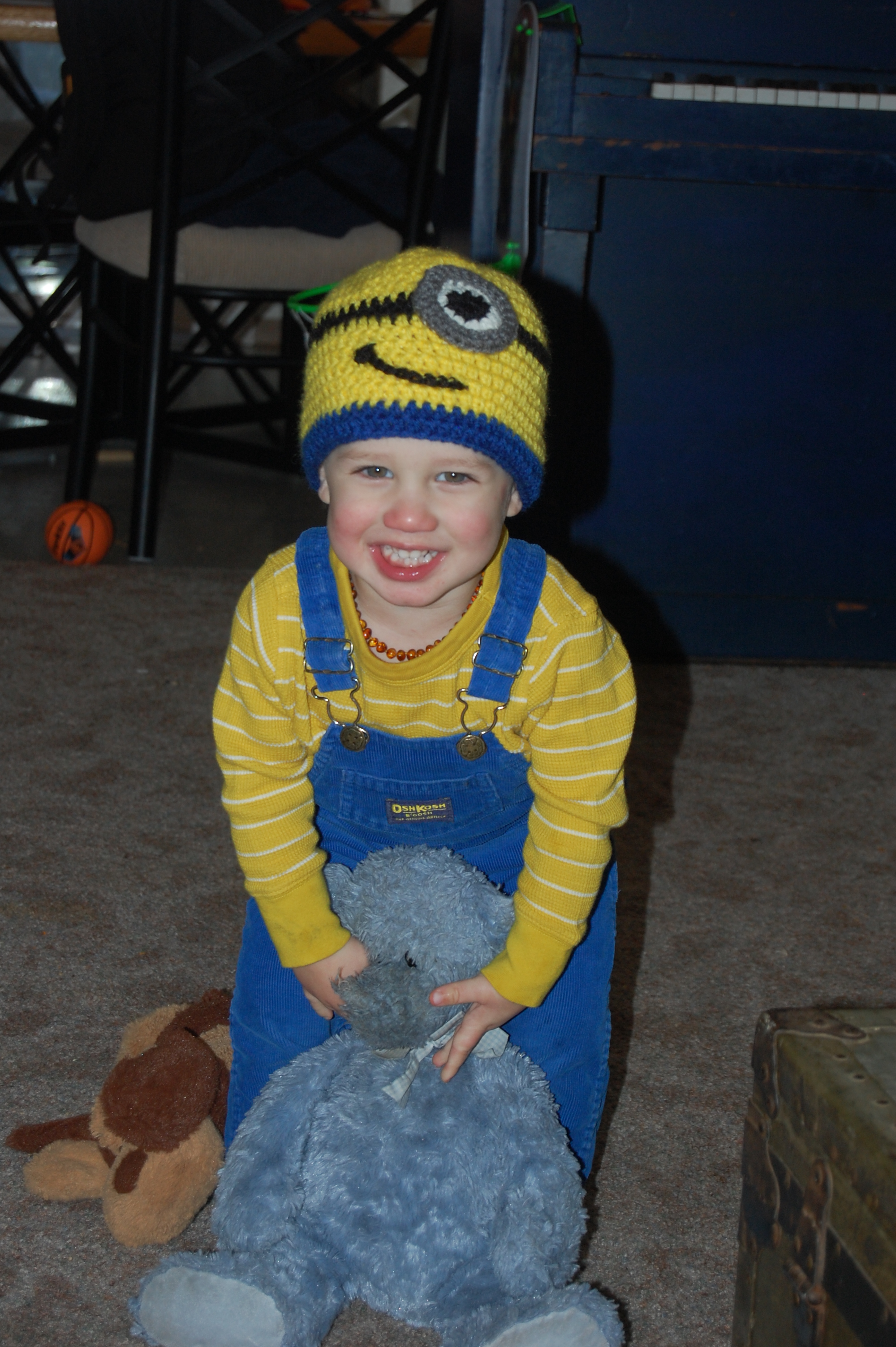 Sam got to be a minion from Despicable Me, with a hat made by me and some thrifted overalls and a clearance rack yellow shirt!