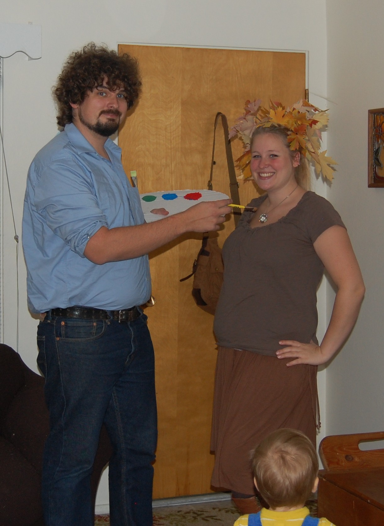 Bob Ross and his happy little tree! We saw the idea on Pinterest and thought it’d be a pretty easy one to pull off, especially with Pauls hair on the long side this year!
